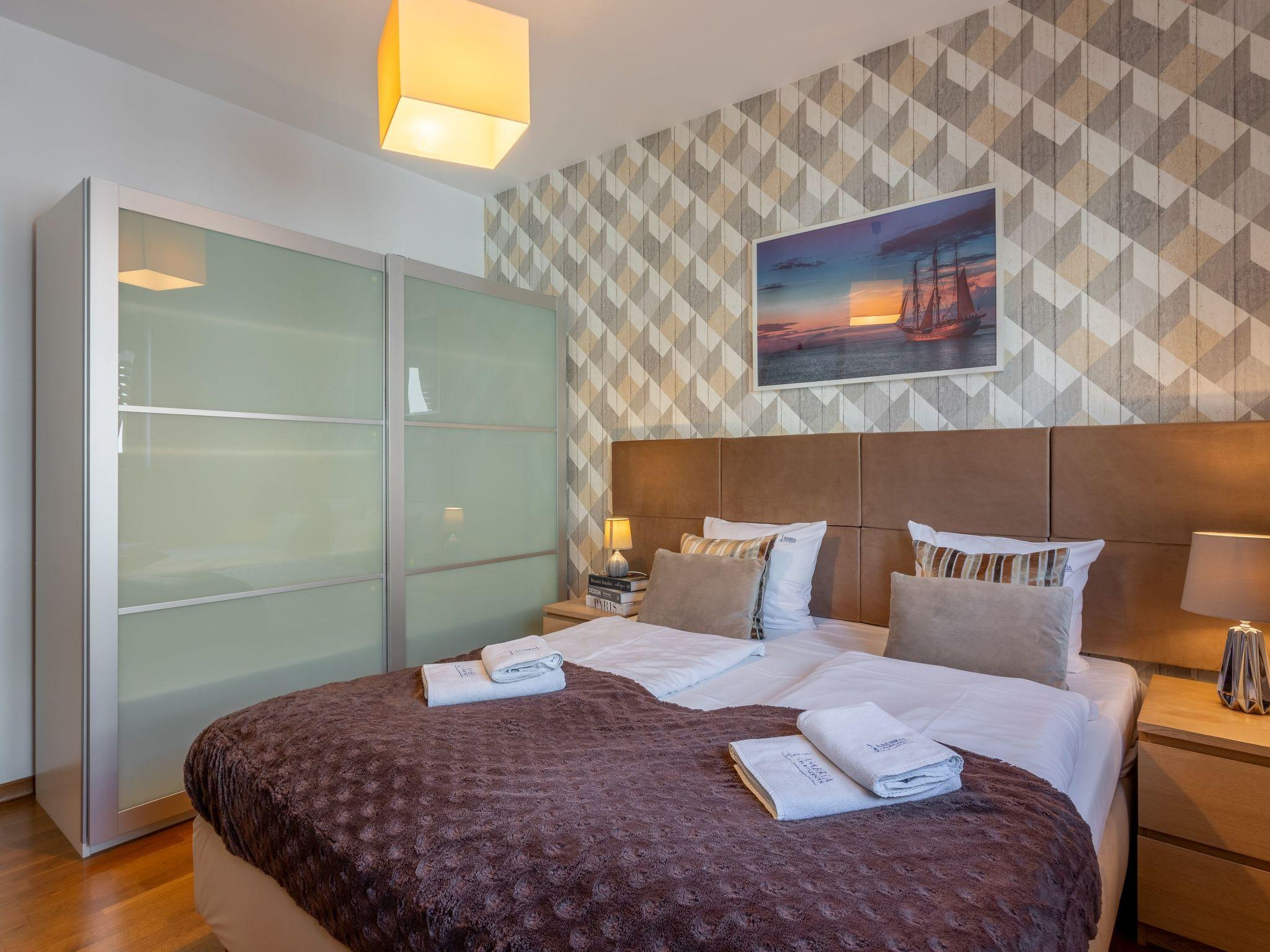 "Platan II" ist ein voll ausgestattetes Apartment mit zwei Schlafzimmern, einem Wohnzimmer mit Küchenzeile und einem Badezimmer mit einer Gesamtfläche von 56 m2. Sein zusätzlicher Vorteil ist ein sehr geräumiger Balkon. Es ist ein modernes Interieur im skandinavischen Stil – hell, schlicht und funktional. Es dominieren Erdfarben: Beige, Grau und Braun. Die Lichtintensität lässt sich dank der innenliegenden Verdunklungsrollos, mit denen alle Zimmer ausgestattet sind. Dank zahlreicher Annehmlichkeiten, umfassender Ausstattung sowie gedämpfter Ästhetik eignet es sich sowohl für kurze als auch für längere Aufenthalte – obwohl es letztere Option definitiv fördert und Ihnen ermöglicht, sich in einer angenehmen Umgebung zu entspannen.