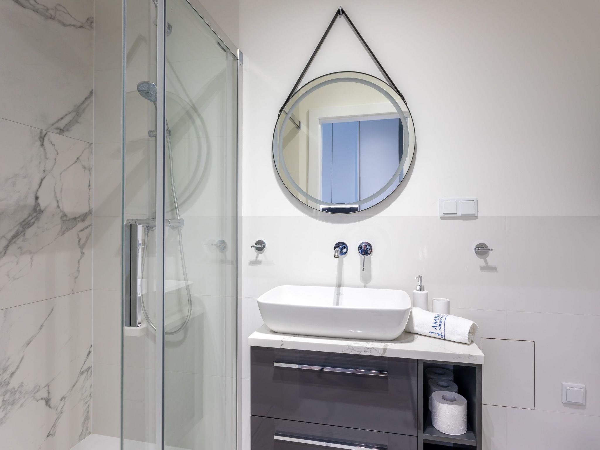 Das Apartment Albus 419 ist ein Maisonette-Apartment und bietet Platz für bis zu 5 Personen. Es besteht aus einem Wohn-, Ess- und Schlafbereich, einer voll ausgestatteten Küchenzeile und einem sehr geräumigen Badezimmer - seine Gesamtfläche beträgt 50 m2. Sein zusätzlicher Vorteil sind die zwei Balkone, die eine sehr praktische Erweiterung der Wohnung darstellen, von denen aus man den begehrten Blick auf das Meer hat. Der Wohnungspreis beinhaltet auch einen Stellplatz in der zur Wohnung gehörenden Tiefgarage. Das Interieur ist sehr ästhetisch und auf hohem Niveau eingerichtet, was sich in schönen modernen Möbeln sowie auffälligen Accessoires widerspiegelt, die sich durch ihre Textur und originelle Ausführung auszeichnen. Grau, Weiß und Pastellfarben dominieren die Details, die dezent, unaufdringlich und gleichzeitig sehr ansprechend und elegant wirken. Außerdem gibt es auch Holzelemente, die das Arrangement auf natürliche Weise ergänzen. Zahlreiche Verglasungen vergrößern optisch den Raum und machen die Wohnung äußerst hell und funktional. Achten Sie auch auf zusätzliche Annehmlichkeiten, wie eine auf jeder Ebene installierte Klimaanlage und zwei große Fernseher. All dies gewährleistet den Komfort der Erholung und ermöglicht es Ihnen, sich nach den alltäglichen Herausforderungen zu regenerieren, und garantiert Ruhe und Entspannung in der intimen Privatsphäre eines schönen Interieurs.