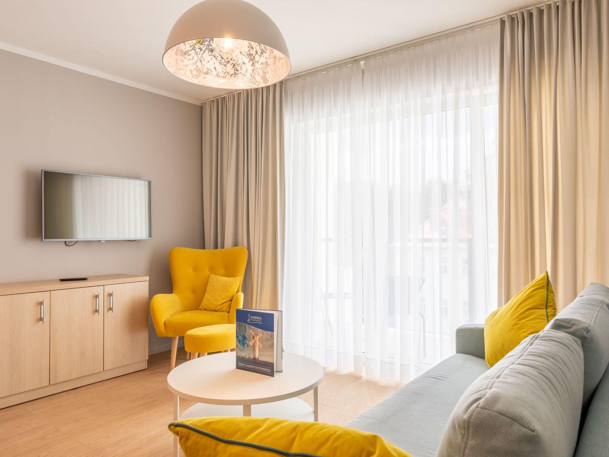 Die Wohnung "Dune IV 724" in Swinemünde ist eine elegante Wohnung in einem exklusiven Apartmenthaus aus dem Jahr 2018. Einzigartig ist auch die Lage der Wohnung: Sie befindet sich in unmittelbarer Nähe zur Promenade (ca. 500 m) und neben einem Park mit einem gut ausgestatteten Spielplatz für Kinder. Dank des umgebenden Grüns bietet es nicht nur Ruhe, sondern auch einen schönen Blick aus dem Fenster und die Nähe zur beruhigenden Natur, die Erholung vom Alltagsstress bietet. In der Nähe gibt es auch berühmte Geschäfte, Bars, Cafés und Restaurants, in denen Sie aromatischen Kaffee trinken oder lokale Spezialitäten probieren sowie schöne Bernstein-Souvenirs kaufen können.
