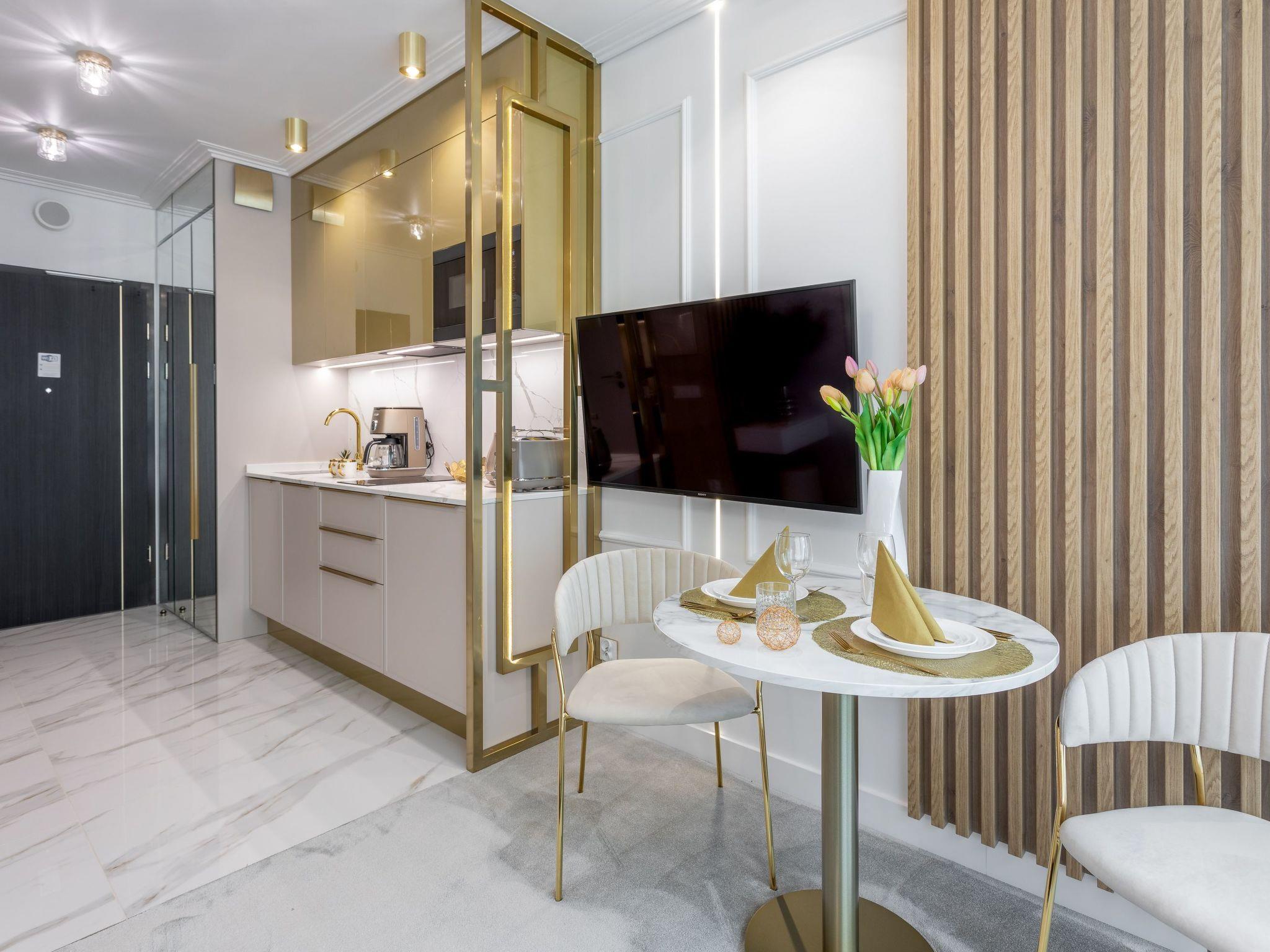 Die Wohnung "Lividus 135" in Swinemünde ist eine sehr elegante Wohnung in einem exklusiven Apartmenthaus aus dem Jahr 2021 mit Restaurant und Café. Einzigartig ist auch die Lage der Wohnung: Sie liegt direkt an der Promenade, nah am Meer und neben einem Park. Dank des umgebenden Grüns bietet es nicht nur Ruhe, sondern auch die Nähe zu wohltuender Natur, die eine Erholung vom Alltagsstress bietet. In der Nähe gibt es auch berühmte Geschäfte, Bars, Cafés und Restaurants, in denen Sie aromatischen Kaffee trinken oder lokale Spezialitäten probieren sowie schöne Bernstein-Souvenirs kaufen können.