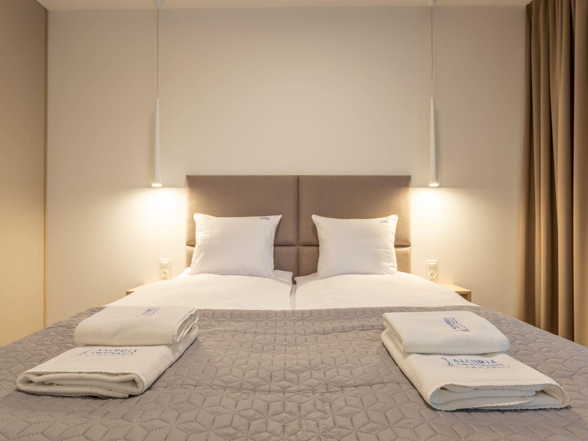Es handelt sich um eine Wohnung mit einem sehr geräumigen Schlafzimmer, einem Wohnzimmer mit einer gut ausgestatteten Küchenzeile und einem modernen Badezimmer mit einer Gesamtfläche von 40 m2, sowie einem großen Balkon. Im Innenraum dominieren helle, äußerst milde Farben: Weiß, Grau und Beige. Zudem ist die Wohnung äußerst gemütlich und zeichnet sich durch schlichte Formen und hohe Qualität aus. Zahlreiche textile und dekorative Accessoires ergänzen den Raum und lassen Sie sich wie zu Hause fühlen. Es ist ein ideales Angebot für Menschen, die während ihres Aufenthalts einige Zeit auf der Couch verbringen möchten, ein Buch lesen oder in einem äußerst bequemen Bett frühstücken möchten.