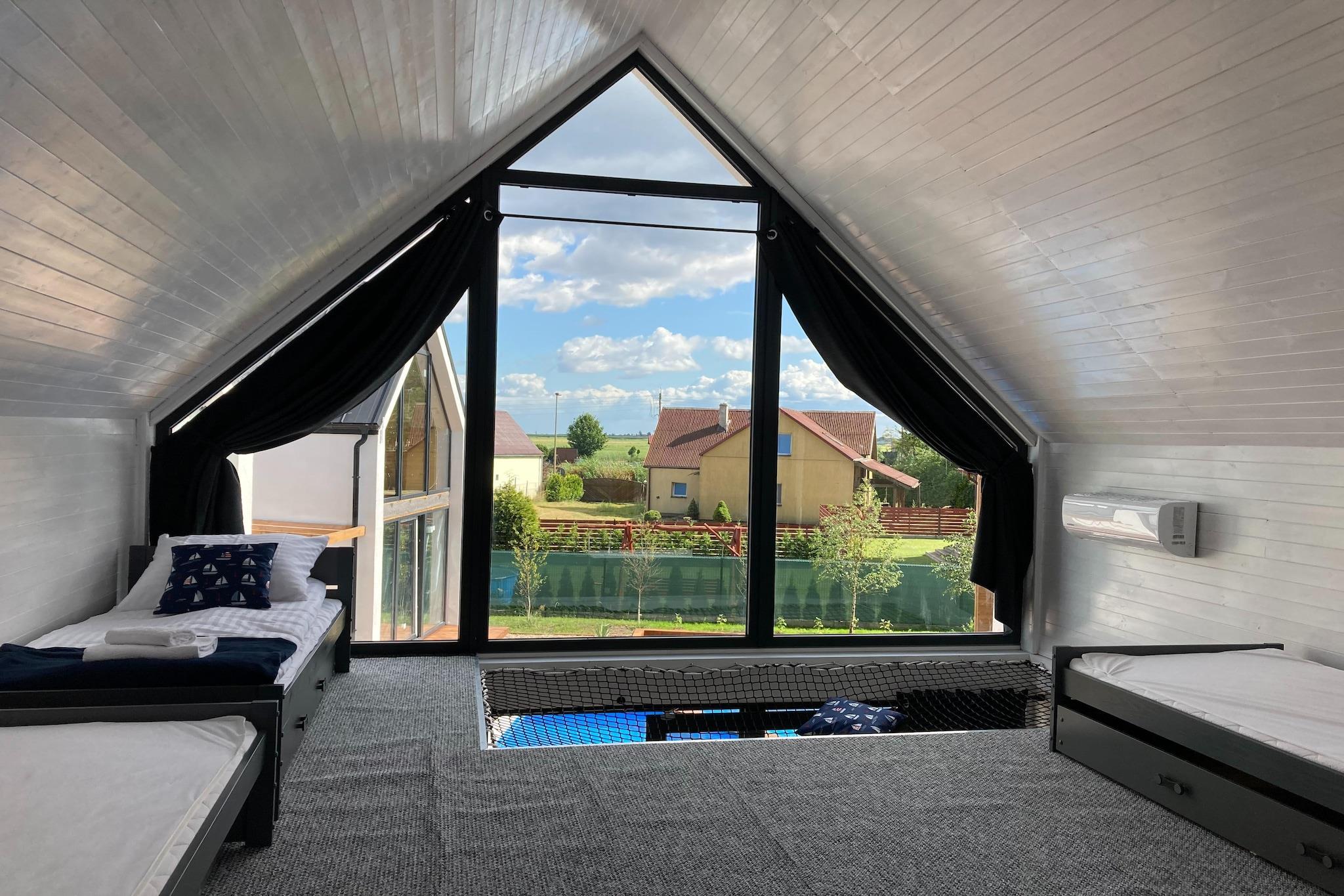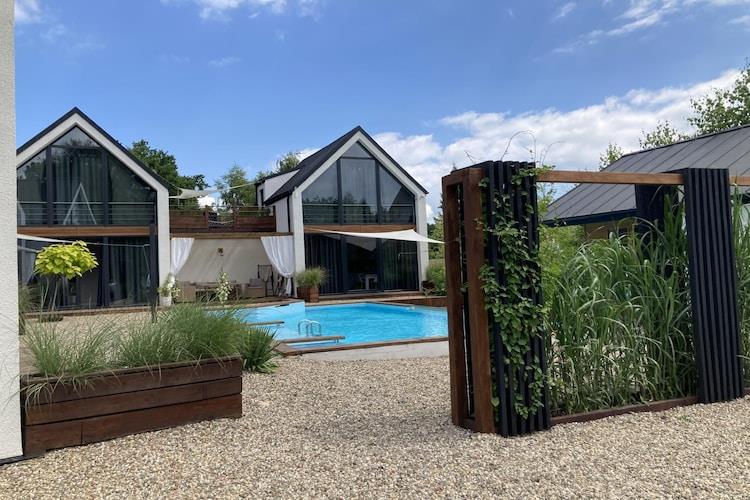 Cozy, comfortable holiday homes with pools and a sauna in Swinoujscie. Guests have access to an outdoor pool, sauna, playground, volleyball court, grill, sun loungers, bicycles, a bonfire area, garden, and parking. From October 2024, a year-round, heated outdoor small pool will also be available for guests. Each house is equipped with free WiFi and air conditioning. There are also 2 Canadian canoes available for exploring the nearby islands of the Wolinski National Park. The houses are located in the buffer zone of the Wolinski National Park, offering tranquility and closeness to nature. The offer is particularly aimed at families with children, who will find many attractions within the resort. Quick access to Miedzyzdroje is about 10 minutes. There is also the possibility to organize a sunset cruise on a Bavaria yacht in the Pomeranian Bay on-site (for a fee).