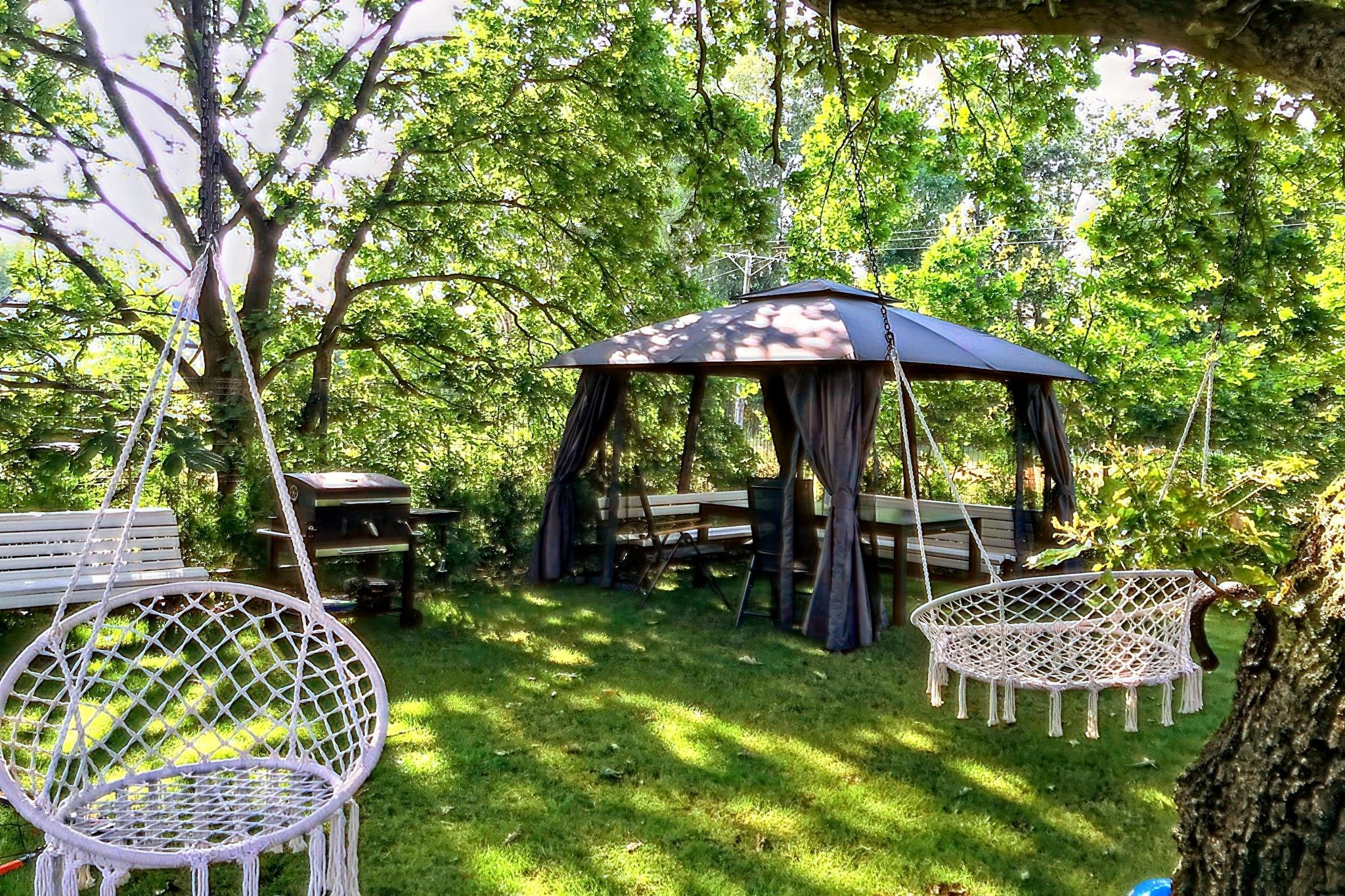 Ein komfortables Ferienhaus mit Pool für bis zu 14 Personen befindet sich in Swinemünde - Przytór. Perfekt für einen Urlaub mit einer Gruppe von Freunden oder einer größeren Familie. Der Außenpool grenzt an eine große Terrasse. Den Gästen stehen ein großer, gepflegter Garten, ein Pavillon, ein privater überwachter Parkplatz und ein Grillplatz zur Verfügung. Den Gästen stehen Kajaks zur Verfügung, Sie können Ihr eigenes Boot mitbringen, der Zugang zur Slipanlage ist 150 m entfernt. Das Haus ist für Menschen gedacht, die Wert auf Ruhe legen. Das Haus ist familienfreundlich mit Kindern. Ab 23 Uhr gilt die nächtliche Ausgangssperre. „Die Anlage liegt in der Pufferzone des Wolin-Nationalparks und besticht durch Ruhe und Nähe zur Natur. Schneller Zugang nach Miedzyzdroje ca. 10 Minuten.“
