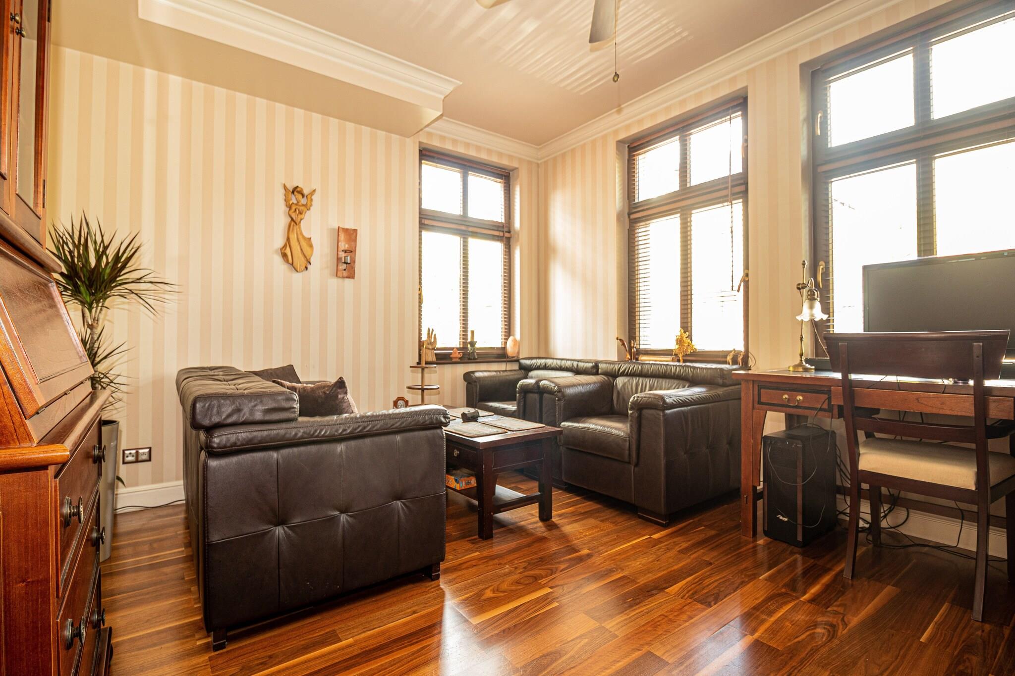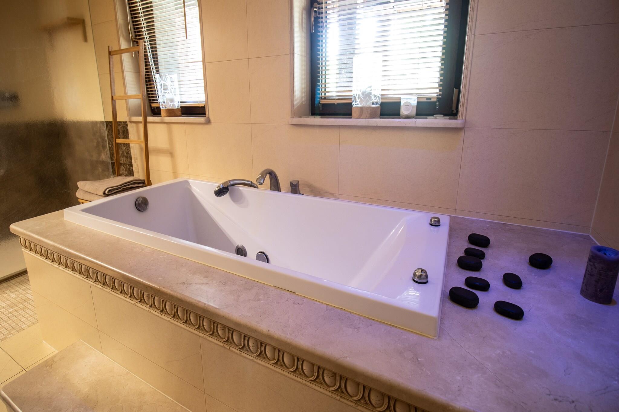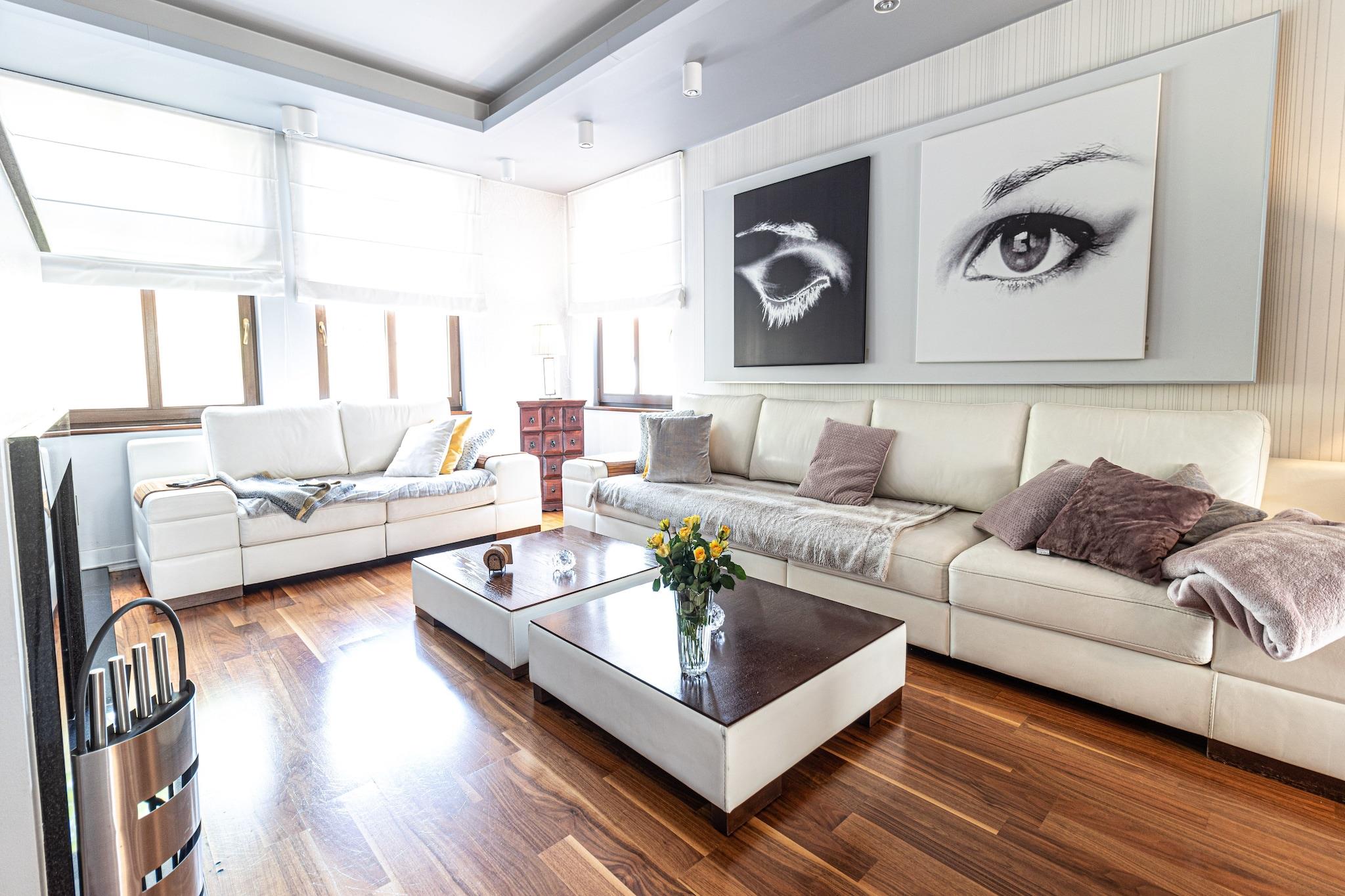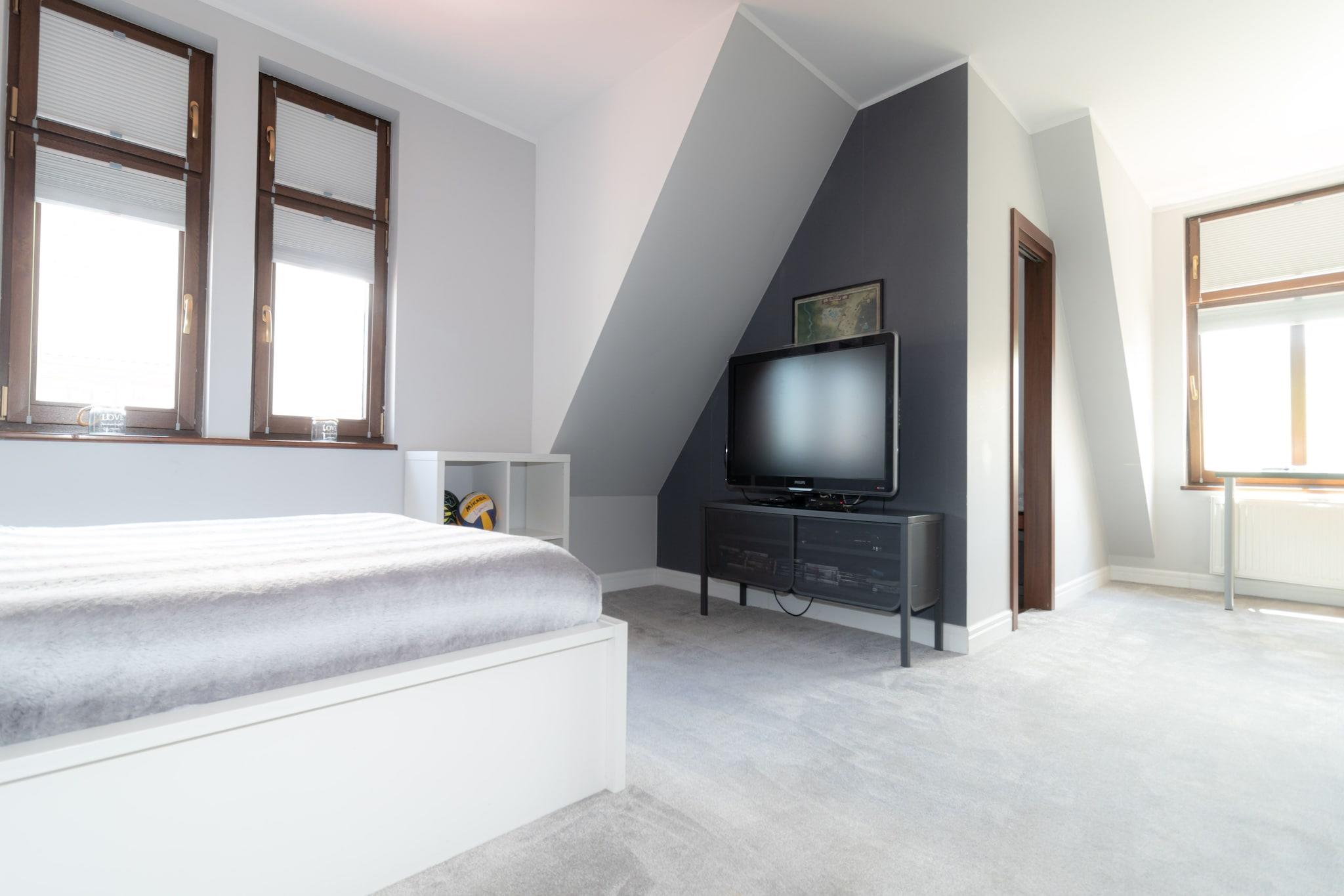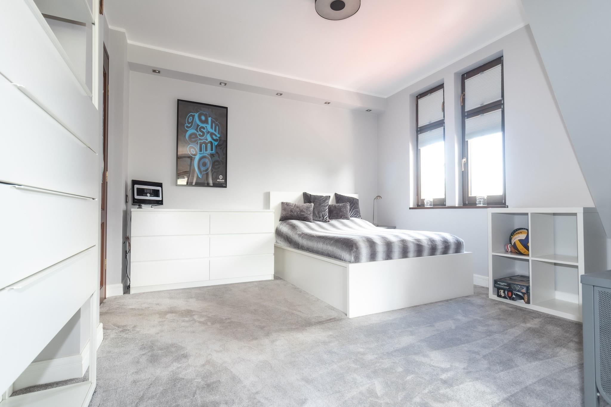 Perfekt für große Familien oder für einen Urlaub mit Freunden: Geräumiges Ferienhaus mit 300 Quadratmetern Wohnfläche, die sich auf drei Etagen verteilen. Insgesamt fünf Schlafzimmer und ein Wohnzimmer wurden geschmackvoll und hochwertig eingerichtet. An warmen Sommertagen werden Sie sich sicherlich im gepflegten Garten und auf der großen Terrasse mit Sitzmöbeln aufhalten. Auch einem Wohlfühlprogramm steht nichts im Wege - dafür sorgen Laufband, Whirlpool und eine Infrarotsauna. Ihr Feriendomizil befindet sich in ruhiger Lage, etwa fünf Autominuten vom Ostseestrand entfernt, direkt hinter der deutsch-polnischen Grenze. Wer gerne etwas Trubel mag, begibt sich ins Zentrum von Swinoujscie (Swinemünde), dort gibt es viele Geschäfte, Restaurants und Cafés. HighLights : Kurtaxe Aktivitäten in der Nähe : Das nahe der polnisch-deutschen Grenze angesiedelte Swinoujscie ist der größte Ferienort der Insel Wolin und hat eine ansprechende touristische und gastronomische Infrastruktur. Das Wassersportangebot ist groß und auch Angler finden immer wieder ein ruhiges Plätzchen am Meer, See oder Stettiner Haff, um ihre Ruten auszuwerfen. Hauptfortbewegungsmittel sollten Fahrrad, Boot oder die eigenen Füße sein, um die wunderschöne Landschaft außerhalb des Städtchens Swinoujscies zu erkunden. Unzählige, gut beschilderte Radwanderwege laden zu herrlichen Touren auf dem Drahtesel ein. Für diejenigen, die lieber auf dem Wasser unterwegs sind, gibt es ebenso reichlich Möglichkeiten: Touren mit dem Kanu, Paddel- oder Motorboot sind genauso möglich wie eine geführte Schiffstour von einem der vielen Häfen der Umgebung aus. Mobilität : Nicht geeignet für Personen mit eingeschränkter Mobilität