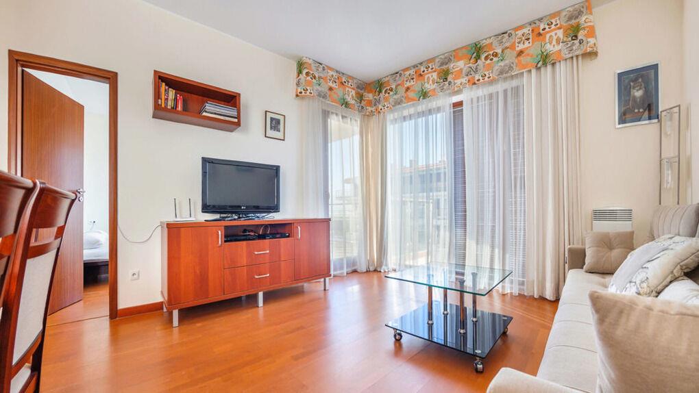 Wir bieten Ihnen Apartments gleich an einem breiten Sandstrand an. Im Teil der Apartments gibt es eine schöne Aussicht aufs Meer.