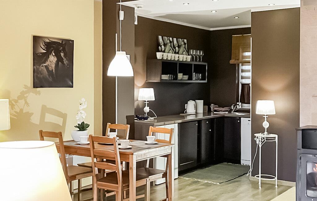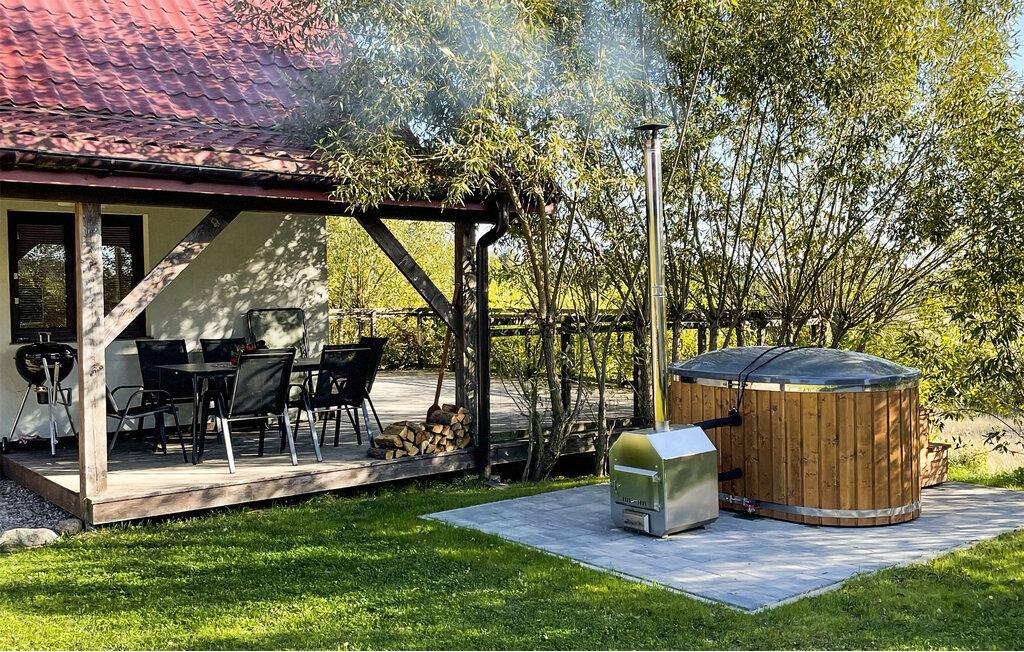 Das Ferienhaus in Szarejki besticht durch seine geschmackvolle Einrichtung, die moderne und rustikale Elemente perfekt vereint. Die großzügigen Innenräume bieten Ihnen Platz zum Wohlfühlen – von der gemütlichen Wohnküche bis zum stilvollen Schlafzimmer. Besonders die große Terrasse lädt zum Verweilen ein: Hier können Sie den Tag mit einem Frühstück im Freien starten oder abends den Sonnenuntergang genießen. Zwei Häuser, die nach Verfügbarkeit zusammen gebucht werden können, teilen sich auf dem Grundstück eine Sauna sowie zwei finnische Holzbäder, während ein Lagerfeuerplatz und Spielmöglichkeiten wie Tischtennis und Volleyball für Abwechslung sorgen.