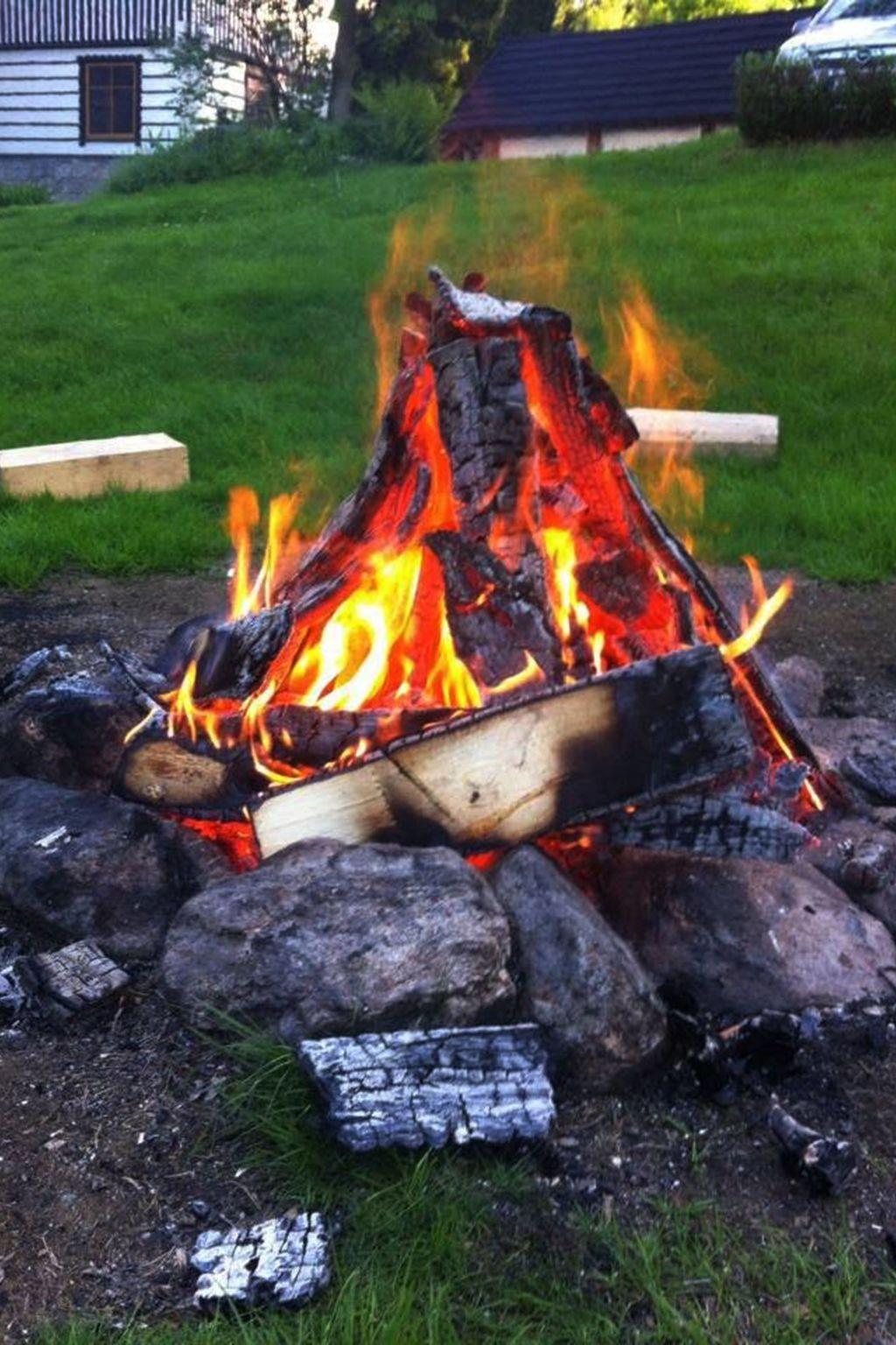 FEUERPLATZ und GARTEN - vor dem Haus gibt es eine große Fläche, auf der wir gewöhnlich ein Lagerfeuer machen und Leckereien am Stock rösten oder eine gemeinsame Suppe in einem Kessel kochen.