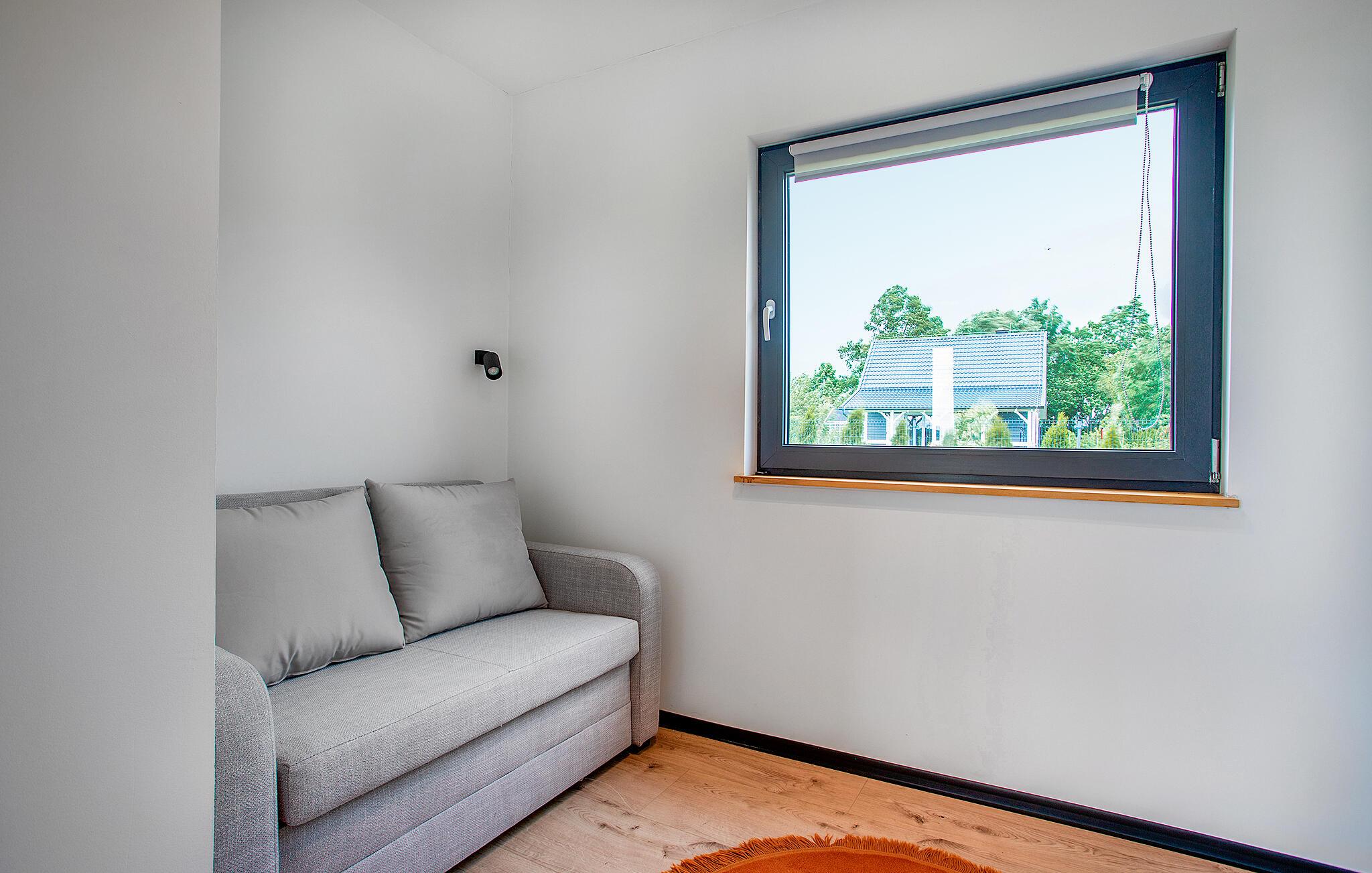 Dieses moderne Urlaubsdomizil begrüßt Sie auf einem weitläufigen, eingezäunten Grundstück und bietet Ihnen ein helles und behagliches Zuhause auf Zeit. Bereiten Sie in der offenen Küche leckere Mahlzeiten zu und streamen Sie nach einem aktiven Tag in der Natur einen spannenden Film – ganz entspannt auf dem gemütlichen Sofa.