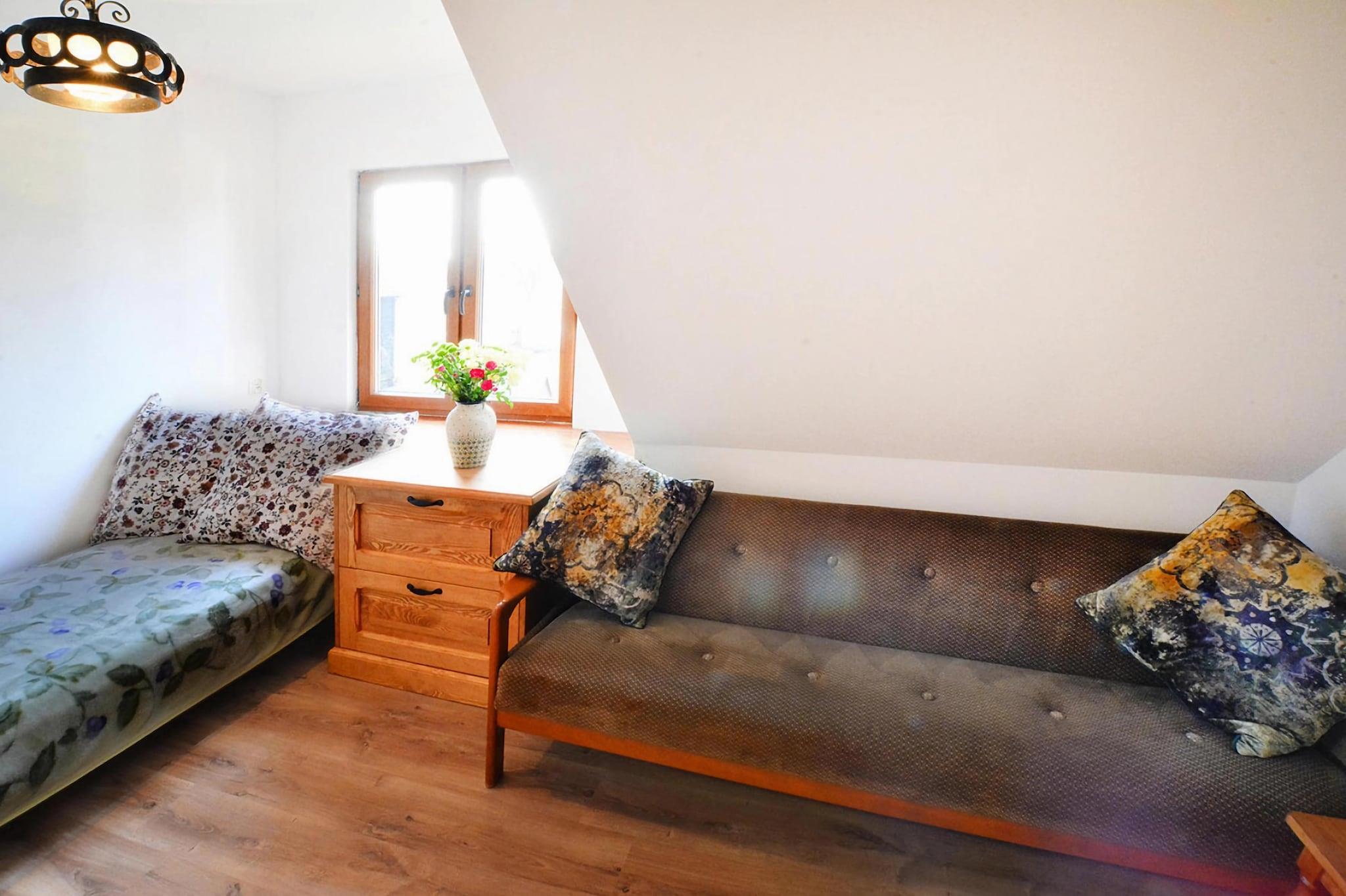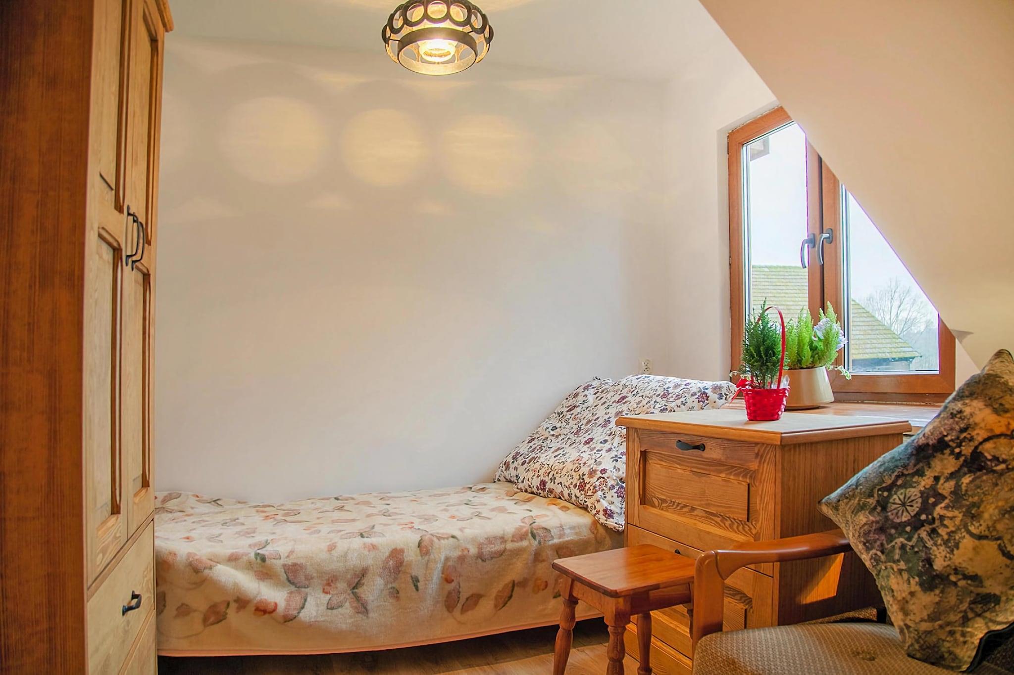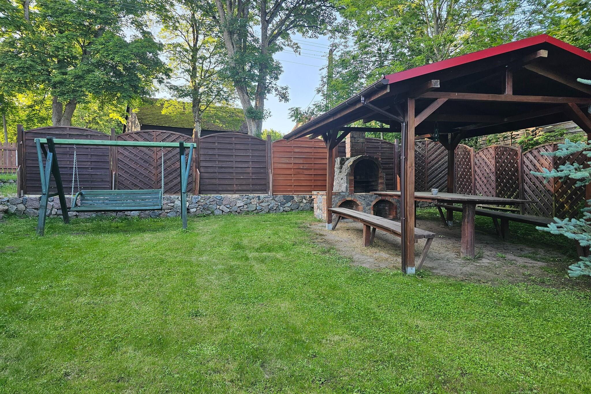 Ein komfortables XXL-Ferienhaus im Grünen, in ruhiger Lage, umgeben von Wiesen und Wäldern, inmitten einer wunderschönen Naturlandschaft mit zahlreichen Seen. Der nächste See, wo Sie schwimmen, vom Pier aus oder mit dem Boot angeln können, ist 1,8 km entfernt. Das 2-stöckige Steinhaus verfügt im Erdgeschoss über ein geräumiges Wohnzimmer mit Kamin, großem Tisch und Fernseher. Von hier aus haben Sie Zugang zu einer überdachten Terrasse mit Gartenmöbeln. Es gibt Grillmöglichkeiten. Im Erdgeschoss gibt es außerdem eine geräumige Küche mit hervorragender Ausstattung und eine Toilette. Im ersten Stock befinden sich 5 separate Schlafzimmer (davon 1 mit Balkon) und 4 Badezimmer (jeweils mit Dusche und WC). Es gibt eine Waschmaschine. Die Beheizung des Hauses erfolgt hauptsächlich über einen effizienten Kamin (Holz im Preis inbegriffen), es besteht jedoch auch die Möglichkeit, Elektroheizungen zu mieten (gegen Aufpreis). WLAN ist verfügbar. Auf dem umzäunten Grundstück gibt es einen Parkplatz und einen Spielplatz für Kinder. Der Eigentümer der Anlage wohnt nebenan und stellt den Gästen (gegen Gebühr) einen Tennisplatz, eine Tischtennisplatte, Tischfußball, Fahrräder und einen mit Fischen bestückten Angelteich zur Verfügung. Der Wierzchowo-See liegt 1,8 km entfernt. Dort kann man schwimmen (sehr sauberes Wasser) und angeln. Der Eigentümer verfügt über einen privaten Bereich am Ufer (3,5 km vom Haus entfernt), wo den Gästen ein Privatstrand, ein Pier und ein überdachter Pavillon zur Verfügung stehen. Sie können dorthin mit dem Auto, dem Fahrrad oder einem schönen Spaziergang gelangen. Der Eigentümer stellt den Gästen ein Ruderboot zur Verfügung (kostenlos, Reservierung erforderlich). Im Preis des Aufenthalts sind enthalten: Bettwäsche, Handtücher, Strom- und Wasserverbrauch, Brennholz, Endreinigung, Internet, Parkplatz, Babybett und Hochstuhl (Anmeldung erforderlich).