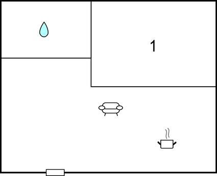 Badezimmer 5m2 (nr. 1) - WC. Warmes und kaltes Wasser. Dusche