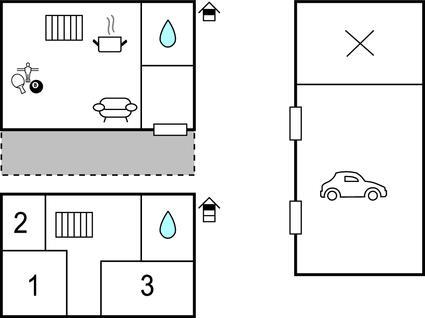 Das Haus liegt auf einem großen, grünen Grundstück. Die Unterkunft umfasst 3 komfortable Schlafzimmer, ein Badezimmer, ein Wohnraum mit Küche sowie ein separates WC.