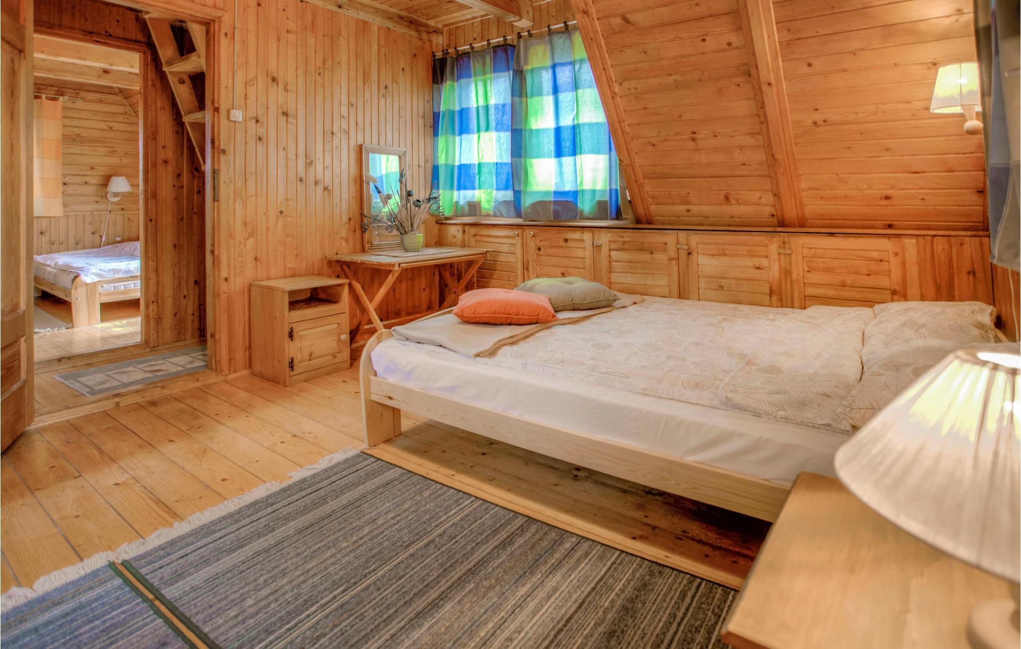 Ihre einladende Unterkunft für bis zu acht Personen liegt nur zwei Gehminuten vom See Tajty in Masuren entfernt. Sie wohnen in einem ansehnlichen, ruhigen Wohngebiet, in dem Ruhe, Naturliebe und Erholung auf dem Programm stehen. Das Haus mit seiner urigen Holzbauweise ist sehr gemütlich, es bietet viel Platz für alle. Sie freuen sich über eine Terrasse, auf der Sie sich entspannen und ins Grüne blicken können. In der Nähe befindet sich ein Spielplatz für Kinder, Fußballtore, und verschiedene Badestellen am See.
