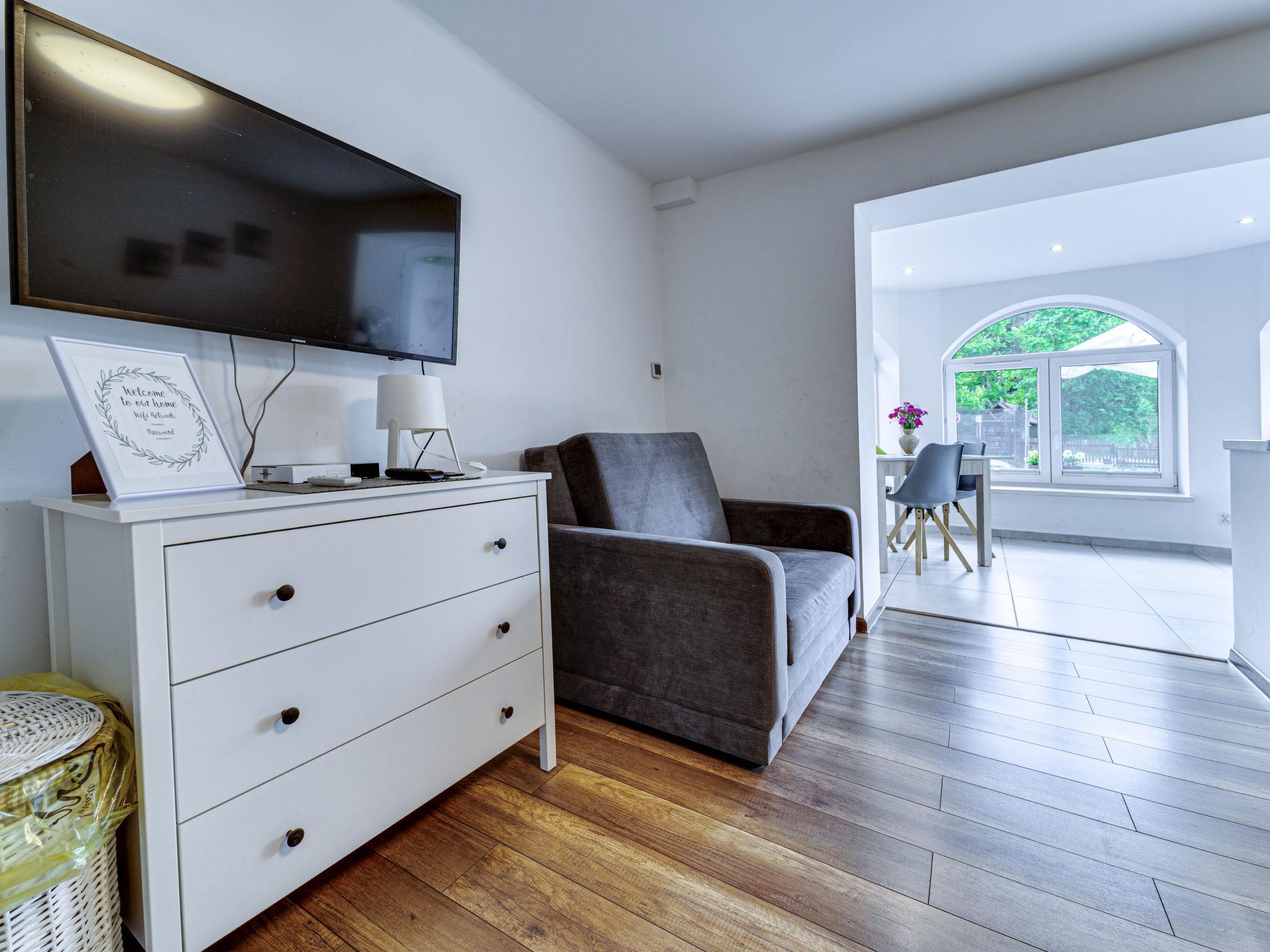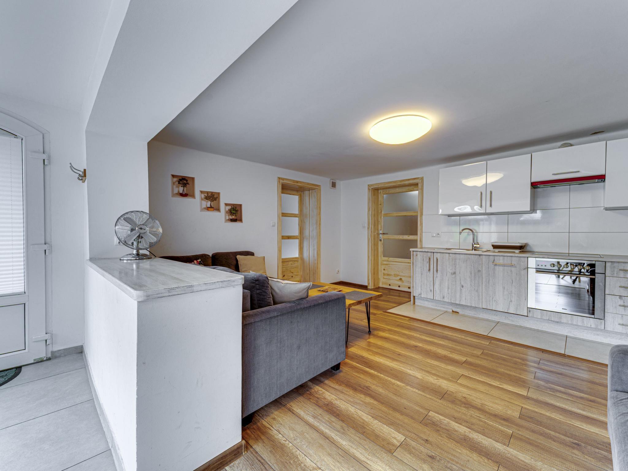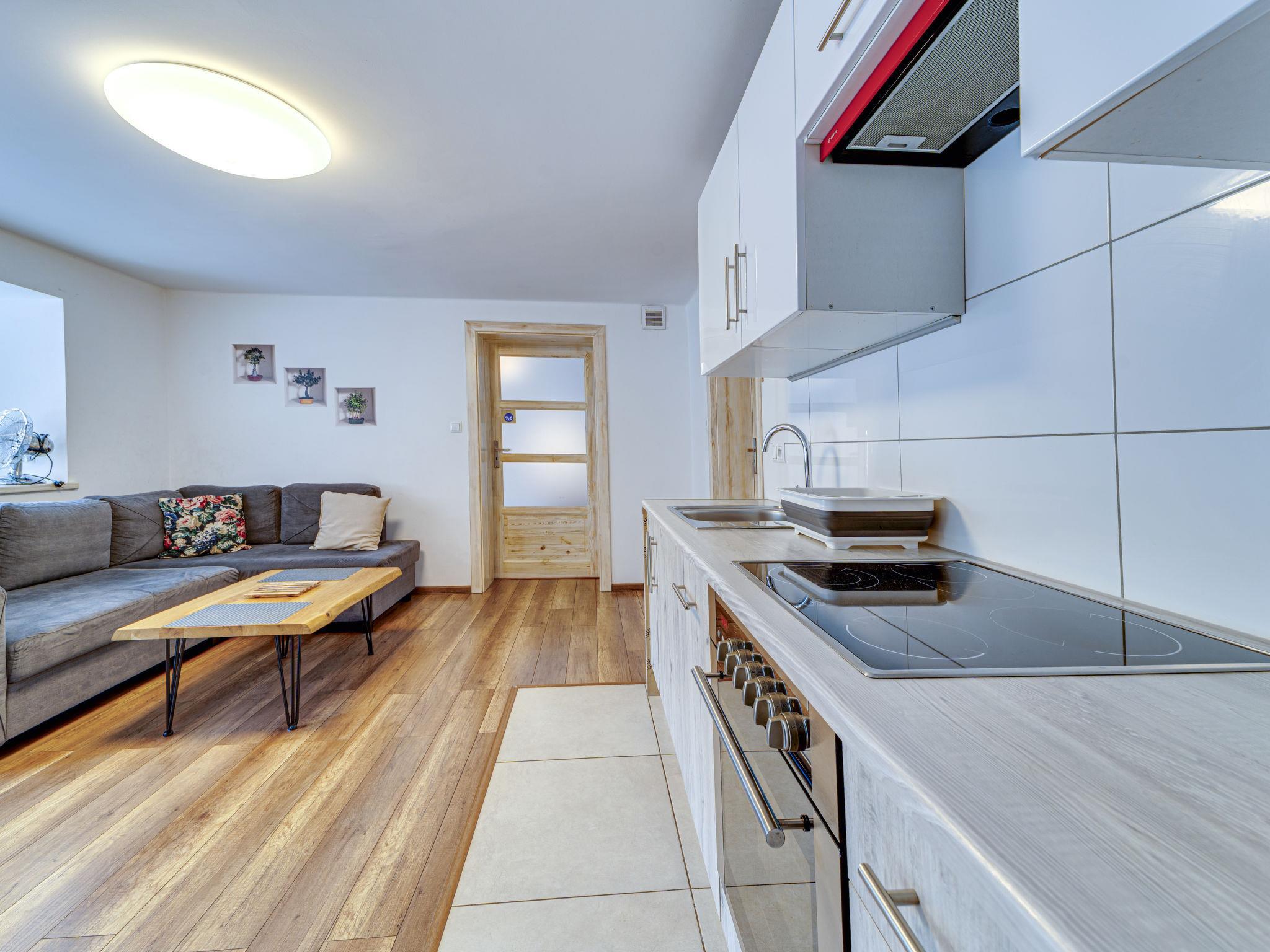 2-Zimmer-Wohnung 50 m2, im Erdgeschoss. Renoviert im Jahre 2017: Salon mit 1 Diwanbett, 1 Doppeldiwanbett und Sat-TV. 1 Zimmer mit 1 Doppelbett (160 cm, Länge 200 cm). Offene Küche (Backofen, Geschirrspüler, 4 Glaskeramikplatten). Dusche/WC. G-Heizung, Holzheizung. Zur Verfügung: Internet (WLAN). Bitte beachten: Maximal 1 Haustier/Hund erlaubt. TV nur PL, DE.