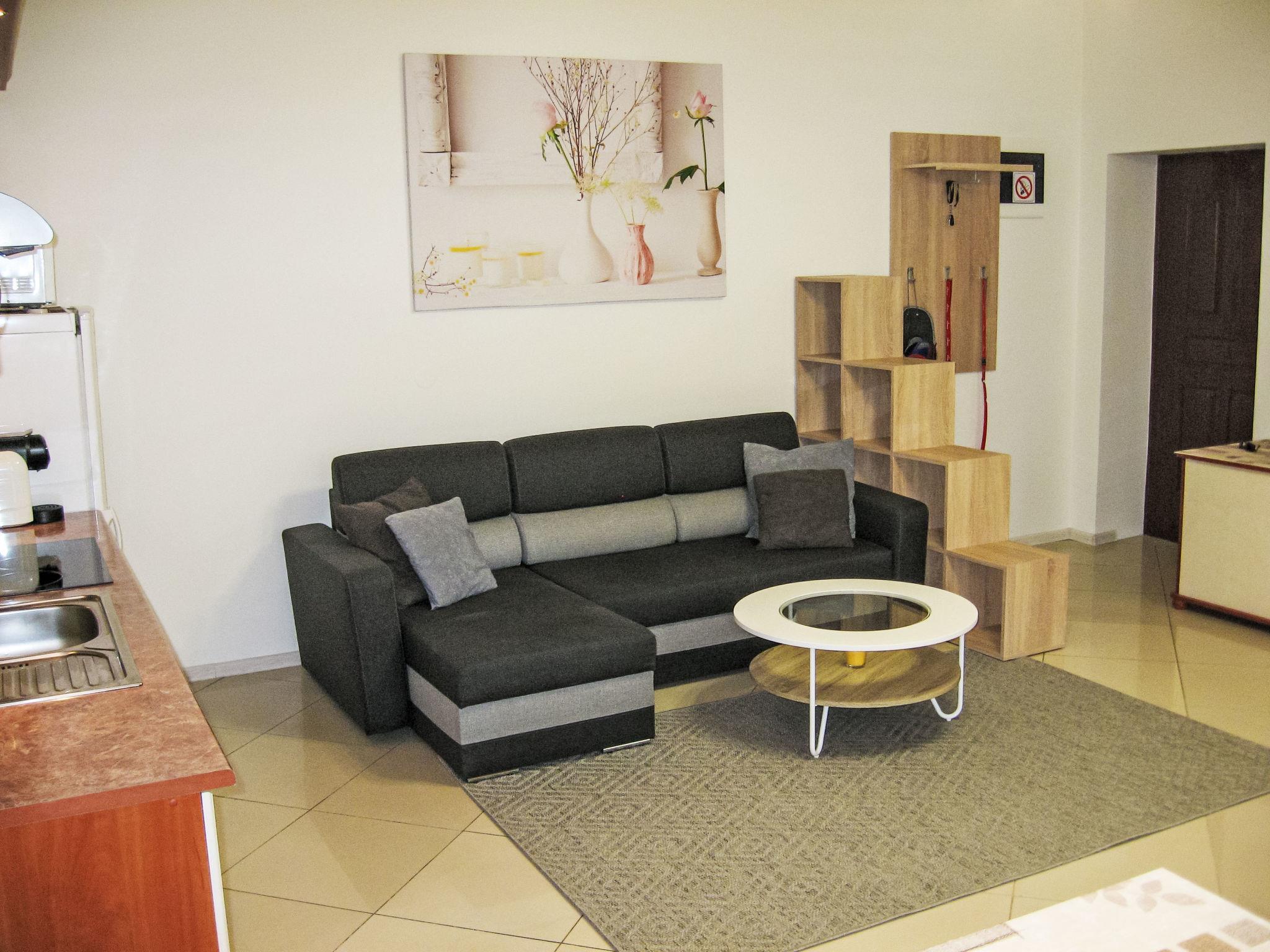 "Jedrek", 2-Zimmer-Wohnung 43 m2, im Erdgeschoss. Komfortabel und gemütlich eingerichtet: Wohn-/Schlafzimmer mit 1 Diwanbett und TV. Ausgang zum Garten. 1 Zimmer mit 1 Diwanbett. Offene Küche (Geschirrspüler, 4 Glaskeramikplatten, Mikrowelle) mit Esstisch und Essecke. Dusche/WC. Heizung, G-Heizung. Gartensitzplatz 20 m2. Terrassenmöbel. Sicht auf die Berge. Zur Verfügung: Waschmaschine. Internet (WLAN). Parkplatz beim Haus. Maximal 1 Haustier/Hund erlaubt.