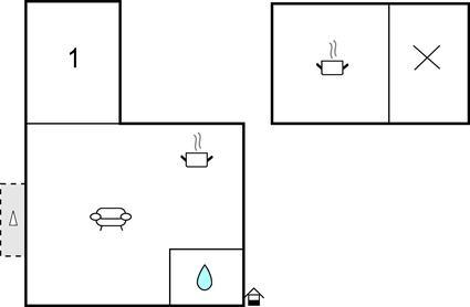 Wohnraum/Küche - 2 Schlafmöglichkeiten. (Doppelbett(en)).