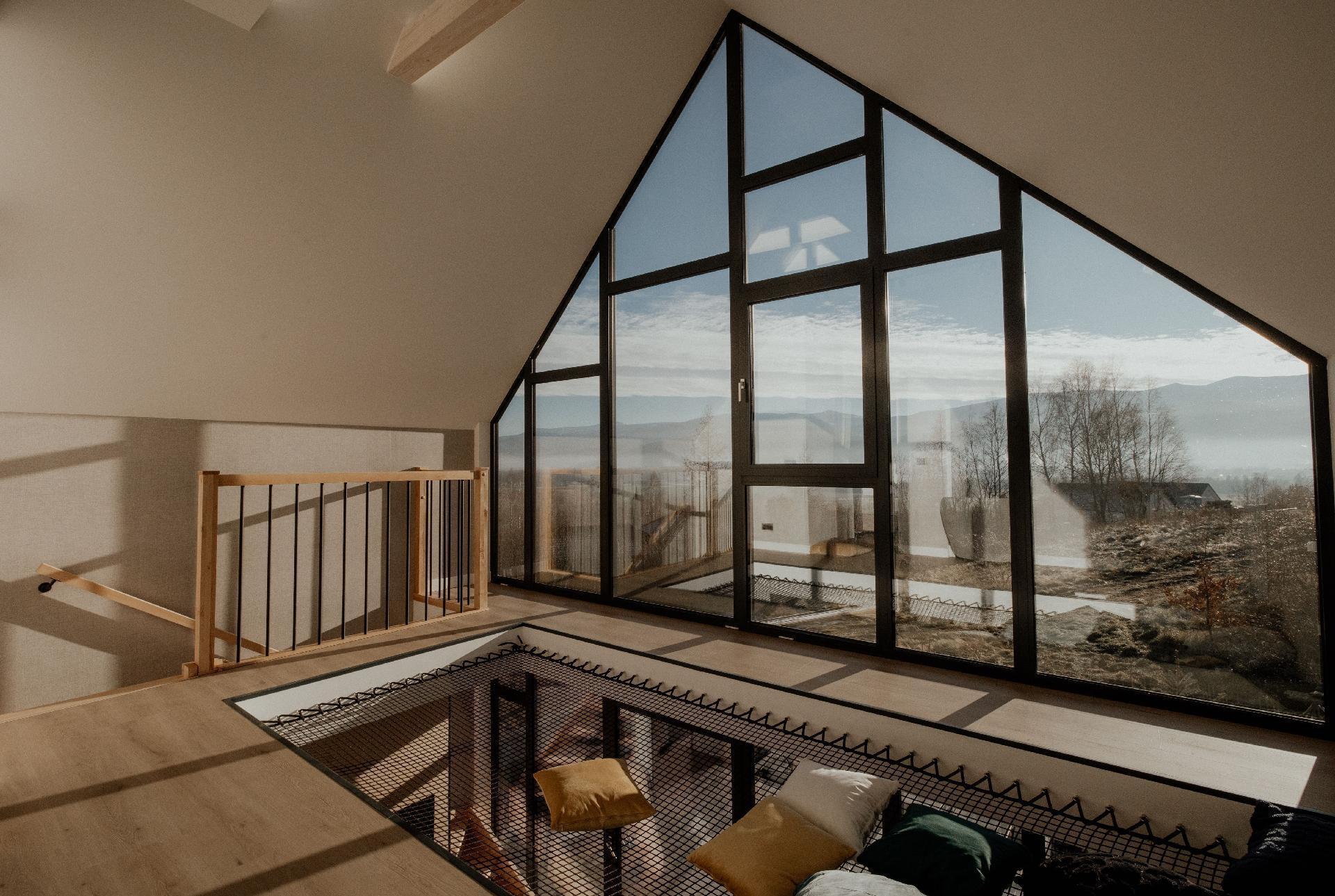 Neben der privaten Sauna und der Whirlpool-Badewanne können die Gäste die Wärme des holzbefeuerten Kamins genießen und auf dem eigens dafür vorbereiteten Entspannungsgitter relaxen, von dem aus sie den Panoramablick auf das Riesengebirge genießen können. Ein vorbereiteter Grill- und Kaminbereich lädt zu geselligen Abenden mit gemeinsamen Gesprächen ein.