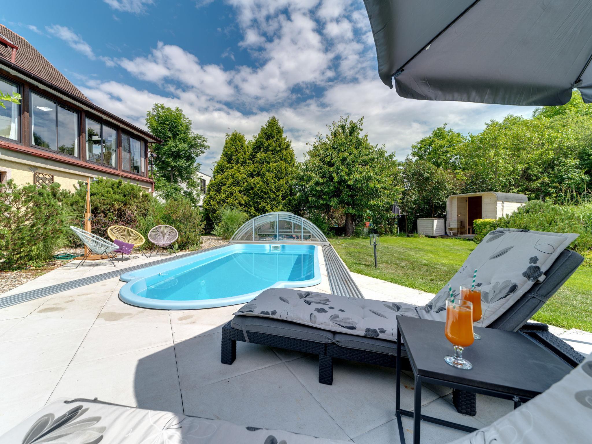 Zweifamilienhaus "W Starym Sadzie", renoviert im Jahre 2020. Am Ortsrand, 4 km vom Zentrum, ruhige, sonnige Lage, an einer Strasse, im Grünen. Zur Mitbenutzung: Garten 3'000 m2 (eingezäunt), Schwimmbad eckig beheizt (3 x 7 m, 150 cm tief, saisonale Verfügbarkeit: 01.Jun. - 30.Sep.). Im Hause: Zentralheizung. Zufahrt bis zum Haus. Parkplatz beim Haus. Lebensmittelgeschäft 200 m, Supermarkt 2 km, Bushaltestelle 30 m, Bahnstation 4 km, Hallenbad 3 km. Golfplatz (18 Loch) 23 km, Tennis 3 km, Reitstall 1 km. Bitte beachten: Der Besitzer wohnt im selben Haus. Pool mit Gegenstromanlage.