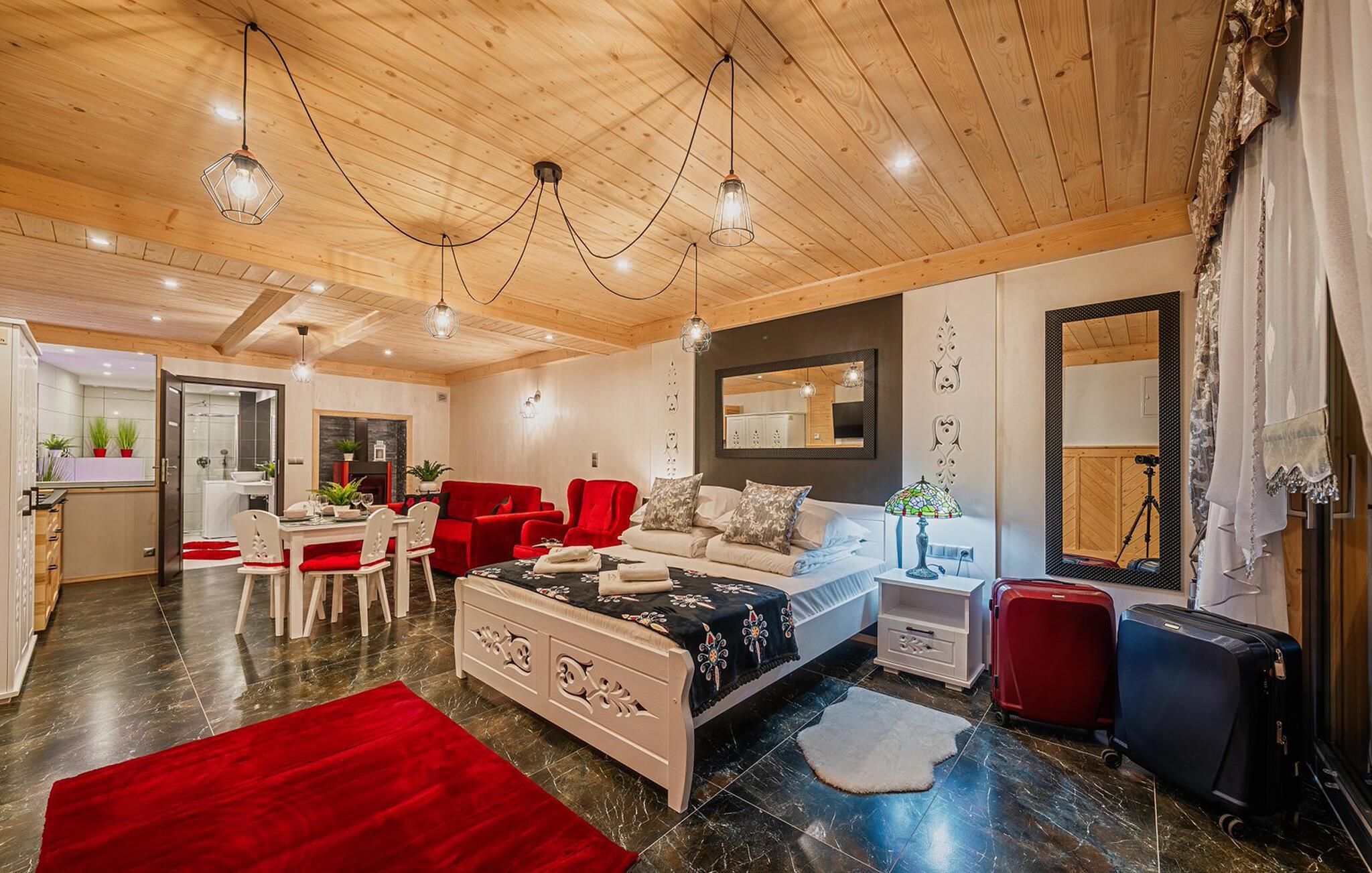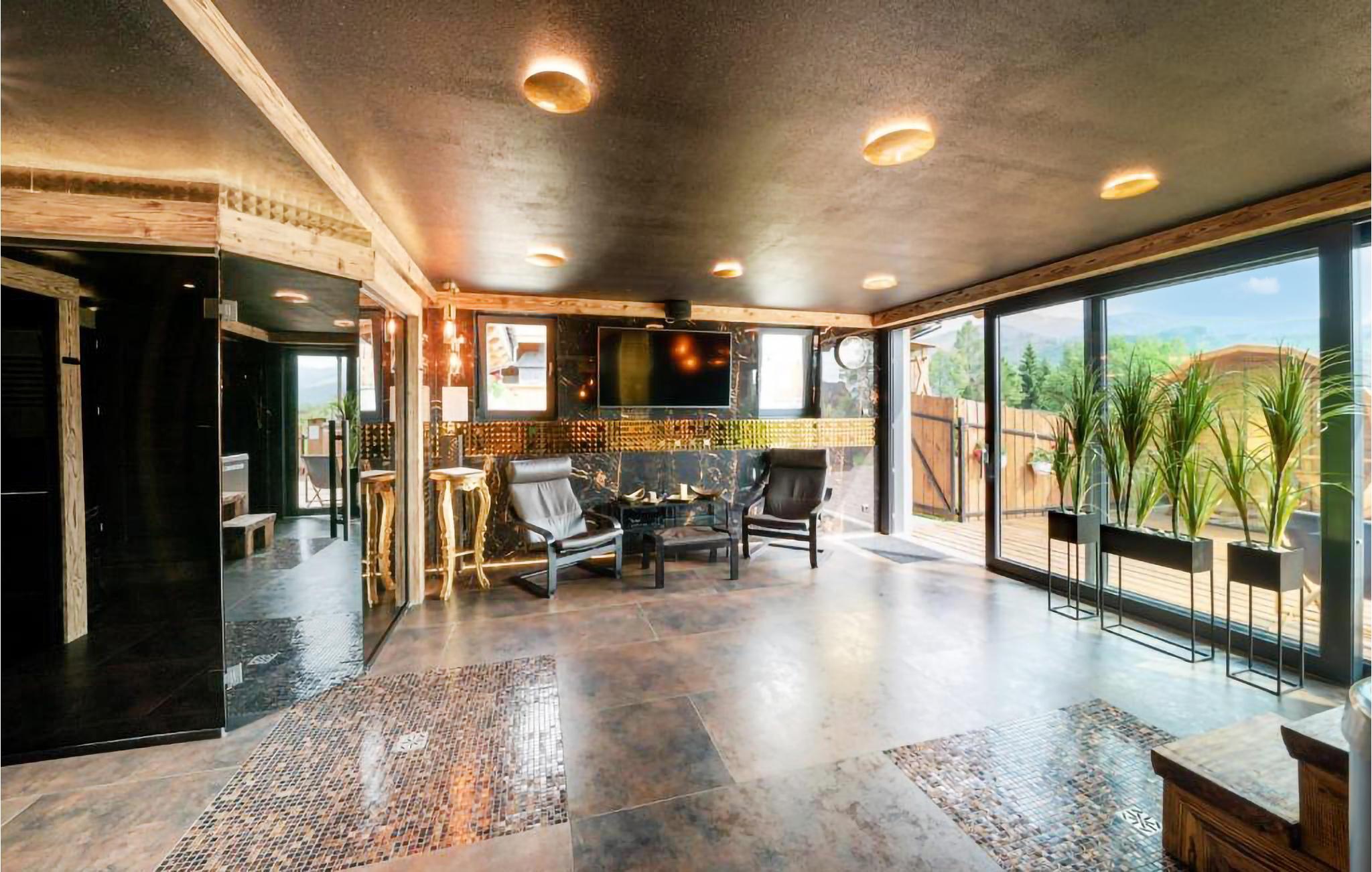 Die Erdgeschosswohnung bietet Platz für bis zu 4 Personen mit direktem Zugang zum Garten (Terrassenmöbel, Liegestuhl), mit zentralem Blick auf die Westliche Tatra. Der Eingang zur Wohnung erfolgt über die Haupttreppe. Im Rahmen des Aufenthalts steht den Gästen ein kompletter Wellnessbereich, ein Spielplatz für Kinder, eine Aussichtsplattform mit ein Grill, eine Aussichtsplattform mit Liegestühlen und Schaukeln, ein Billardraum und ein Parkplatz zur Verfügung. Im Sommer können Sie kostenlos Fahrräder nutzen.