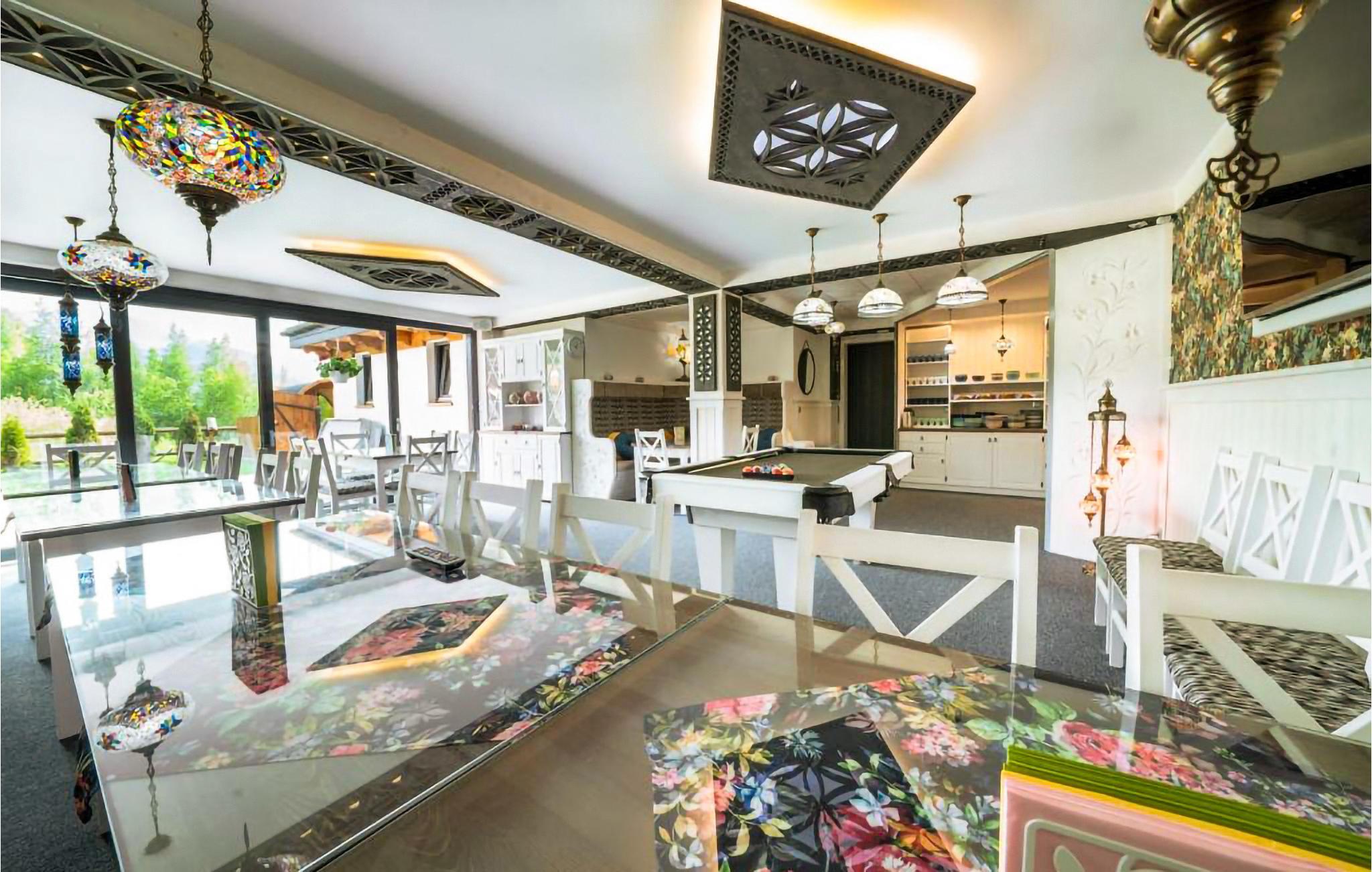 In der Unterkunft genießen Sie einen angenehmen Komfort, und werden neben der Aussicht besonders von den gemeinschaftlich genutzten, vielfältigen Wellness-Angeboten überzeugt sein. Whirlpools und eine Sauna sind tolle Angebote zum Entspannen, zudem können Sie Billard spielen, oder auf der Terrasse den Grill nutzen und beim Blick auf die Berglandschaft an der frischen Luft essen.