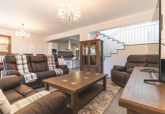Dieses zweistöckige Haus schafft eine ruhige Umgebung für Paare, Familien oder Freunde. Mit Platz für bis zu 6 Personen verfügt das Haus über 3 Schlafzimmer mit Queensize-Betten und jeweils eigenem Bad mit Dusche. Zusätzlich steht ein weiteres Gäste-WC zur Verfügung.