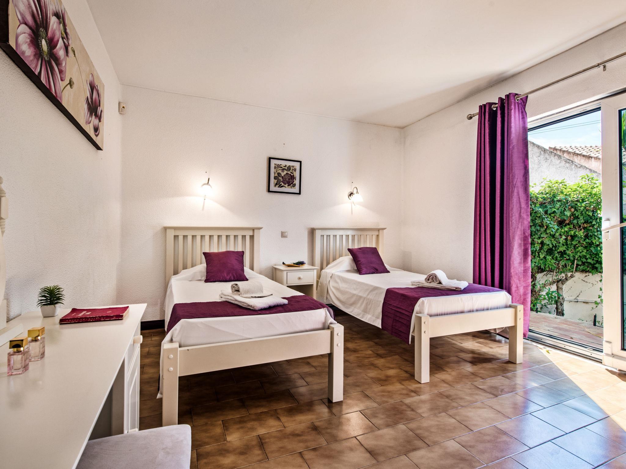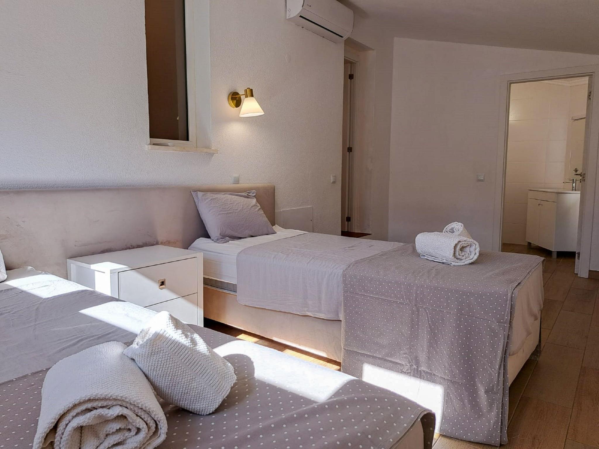 "Libertos V4 - VIP Properties", 5-Zimmer-Villa 120 m2. Sehr zweckmässig und gemütlich eingerichtet: Wohnzimmer mit Esstisch und Kabel-TV (Flachbildschirm), Klimaanlage und Warmluftheizung. Ausgang zur Terrasse. 2 Zimmer, jedes Zimmer mit 2 Betten (90 cm, Länge 200 cm), Klimaanlage und Warmluftheizung. 1 Zimmer mit 1 franz. Bett (160 cm, Länge 200 cm), Klimaanlage und Warmluftheizung. Küche (Backofen, Geschirrspüler, 4 Glaskeramikplatten, Toaster, Mikrowelle, Tiefkühler, elektrische Kaffeemaschine). Bad/WC, Dusche/WC. Obergeschoss: 1 Zimmer mit 2 Betten (90 cm, Länge 200 cm), Dusche/WC, Klimaanlage und Warmluftheizung. Terrassenmöbel, Gartengrill, Liegestühle (6). Sicht auf das Schwimmbad. Zur Verfügung: Waschmaschine, Bügeleisen, Kinderhochstuhl, Babybett bis 2 Jahre (extra), Haartrockner. Parkplatz beim Haus. Bitte beachten: Feuerlöscher. 118642/AL
