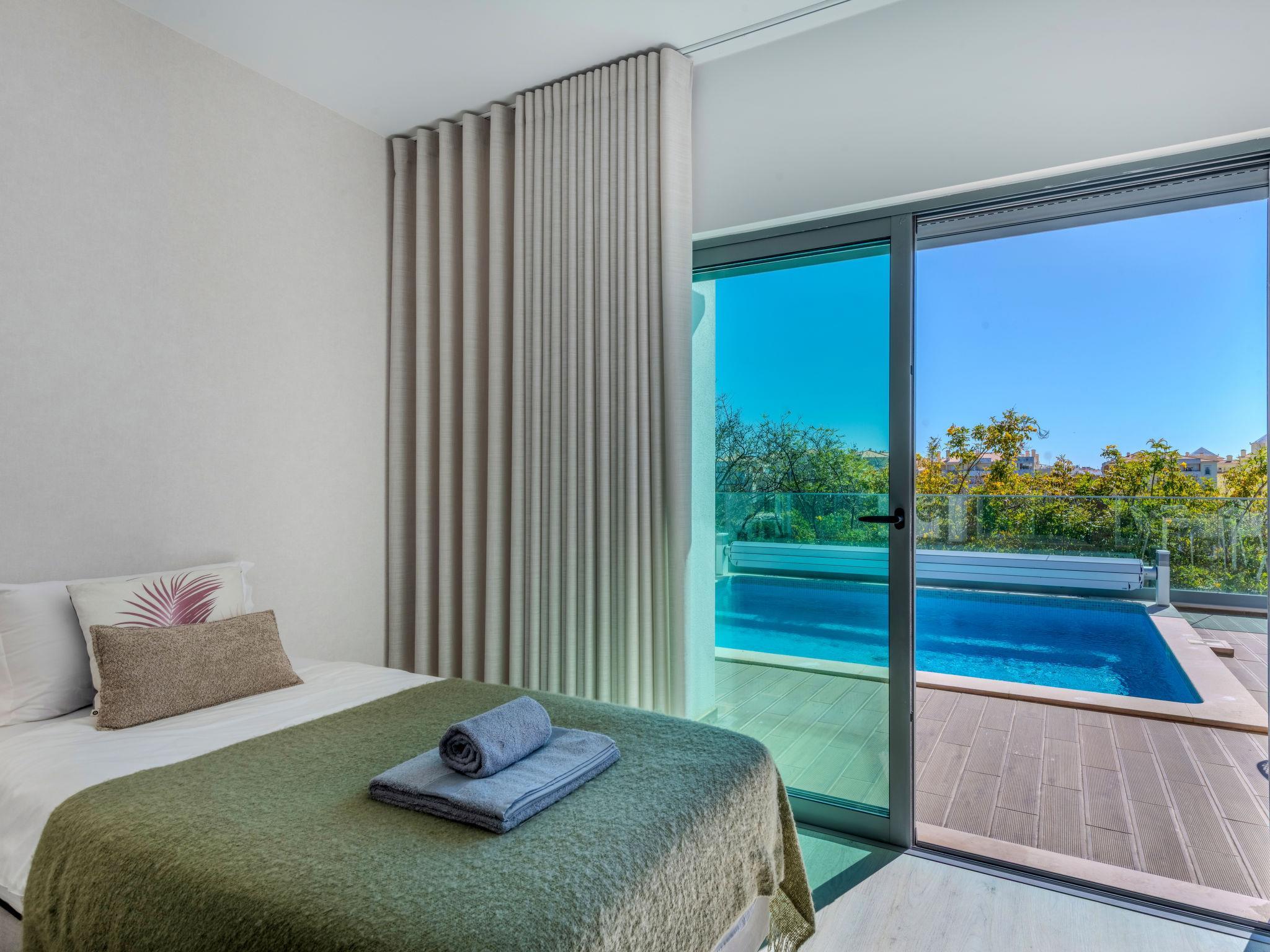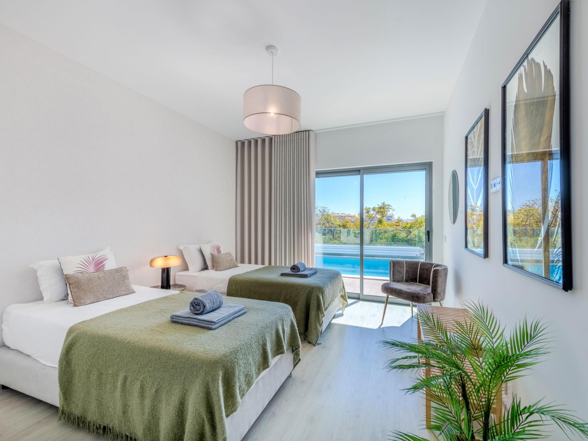 Sehr moderne, komfortable Villa. Im Ort, 2.1 km vom Zentrum von Albufeira, 1.7 km vom Meer. Zur Alleinbenutzung: Schwimmbad eckig (4 x 6 m, 110 - 110 cm tief, saisonale Verfügbarkeit: 01.Jan. - 31.Dez.). Im Hause: Wireless LAN, Klimaanlage, Waschmaschine, Trockenraum. Parkplatz beim Haus. Lebensmittelgeschäft, Supermarkt 250 m, Einkaufszentrum 1.1 km, Restaurant 350 m, Bar 800 m, Bäckerei, Café 250 m, Fahrradverleih 2.9 km, Bushaltestelle 220 m, Bahnstation 5.5 km, Sandstrand "Praia da Oura" 1.7 km, Tauchzentrum 5.5 km. Jacht-Hafen 5.9 km, Golfplatz (18 Loch) 10.5 km, Surfschule 10.1 km, Minigolf 1 km, Reitstall 10.3 km, Kinderspielplatz 1.2 km. Nahe gelegene Sehenswürdigkeiten: Adventure Mini Golf Park 1 km, Zebra Safari Tours 2.9 km, Algarve Shopping 9.4 km, Zoomarine 10.6 km, Krazy World 15.3 km, Faro Airport 35.3 km. Bekannte Seen in der Umgebung sind gut erreichbar: Lagoa dos Salgados 13.4 km. Bitte beachten: Be- und Entladen am Ferienhaus möglich. Gruppen von Jugendlichen unter 25 Jahren zahlen eine zusätzliche Kaution pro Person vor Ort.