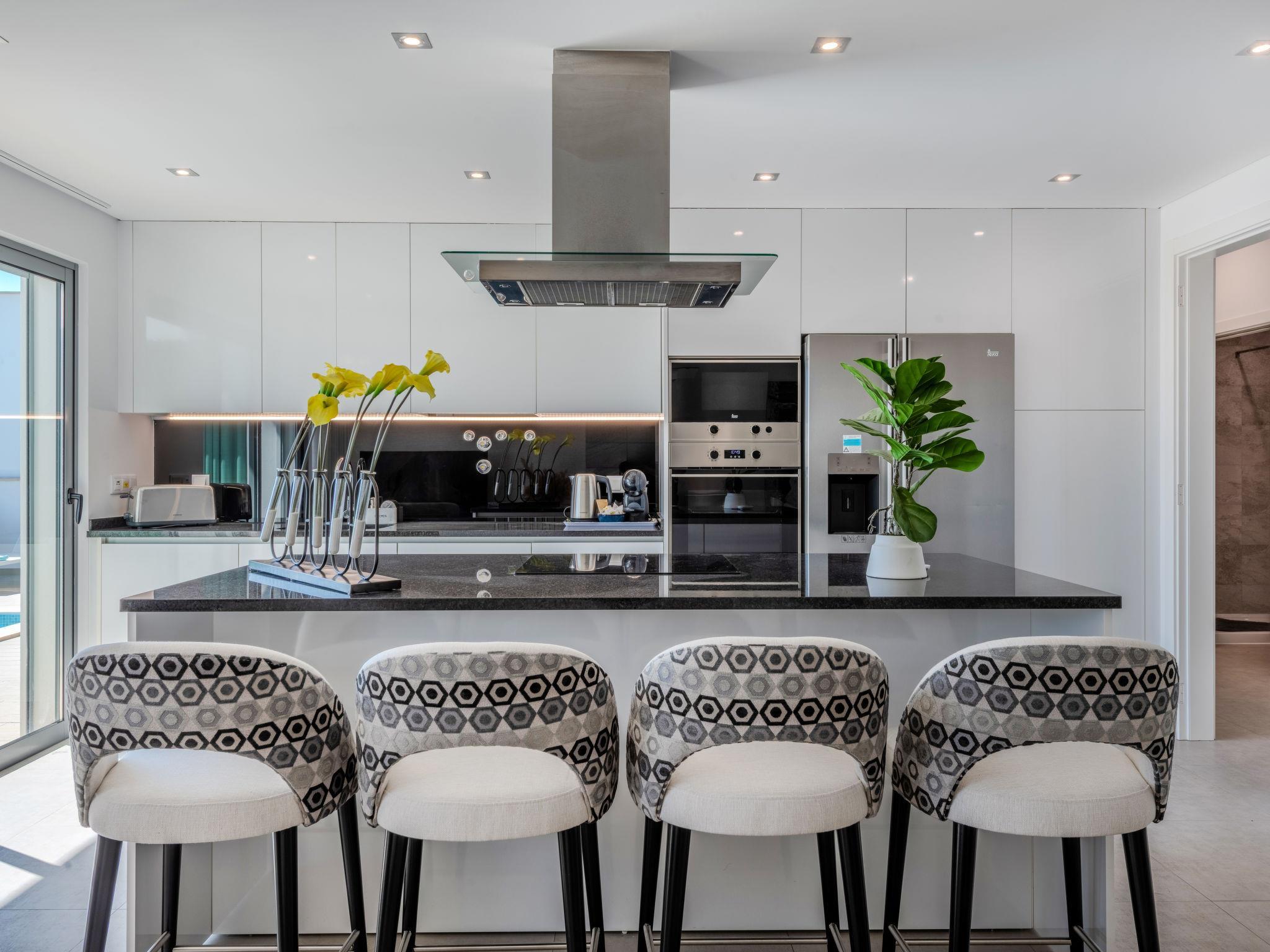 "Vitória", 4-Zimmer-Haus 245 m2. Geräumig und hell, sehr komfortabel und modern eingerichtet: Wohn-/Esszimmer mit Kabel-TV, Internationale TV-Sender, Flachbildschirm, Klimaanlage und Warmluftheizung. Ausgang zur Terrasse, zum Schwimmbad. 1 Zimmer mit 1 franz. Bett (160 cm, Länge 200 cm), Klimaanlage und Warmluftheizung. 1 Zimmer mit 1 franz. Bett (160 cm, Länge 200 cm), Bad/WC, Klimaanlage und Warmluftheizung. Ausgang zur Terrasse, zum Schwimmbad. 1 Zimmer mit 2 Betten (90 cm, Länge 200 cm), Klimaanlage und Warmluftheizung. Ausgang zur Terrasse, zum Schwimmbad. Offene Küche (Backofen, Geschirrspüler, 4 Glaskeramikplatten, Toaster, Wasserkocher, Mikrowelle, Tiefkühler). Dusche/WC. Terrassenmöbel, Balkonmöbel, Gartengrill, Liegestühle (4). Panoramasicht auf das Meer und die Ortschaft. Zur Verfügung: Waschmaschine, Kinderhochstuhl, Babybett bis 2 Jahre (extra). Internet (WLAN, gratis). Parkplatz beim Haus. Geeignet für Familien. 166039/AL