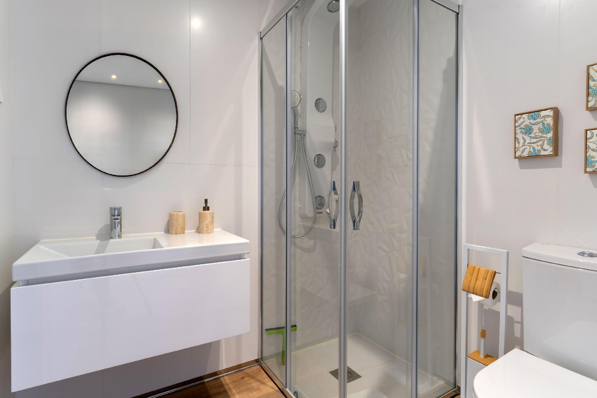 Jedes der drei Bäder ist eine Oase des Stils und der Funktionalität, mit erstklassigen Materialien und modernem Design. Das große Wohnzimmer mit seinen großen Glasfenstern lässt natürliches Licht in den Raum eindringen und schafft eine perfekte Atmosphäre für entspannte Momente. Die moderne Küche, die mit den neuesten Geräten ausgestattet ist, bietet einen idealen Raum, um Mahlzeiten praktisch und stilvoll zuzubereiten.