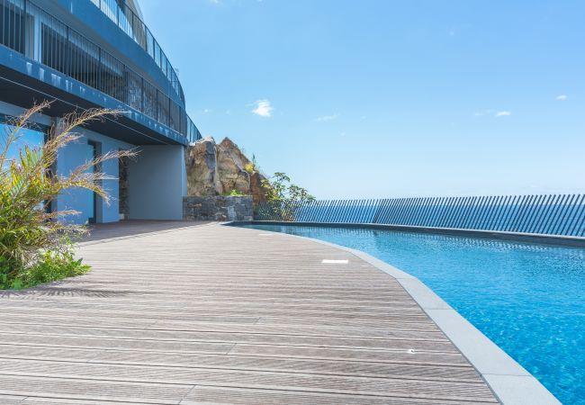 Ein Highlight ist der Gemeinschaftspool, ideal zum Entspannen und Genießen des Ausblicks auf Câmara de Lobos und den Atlantik. Der großzügige Balkon mit Außensitzmöbeln bietet einen hervorragenden Ort für Mahlzeiten im Freien oder zum Entspannen.