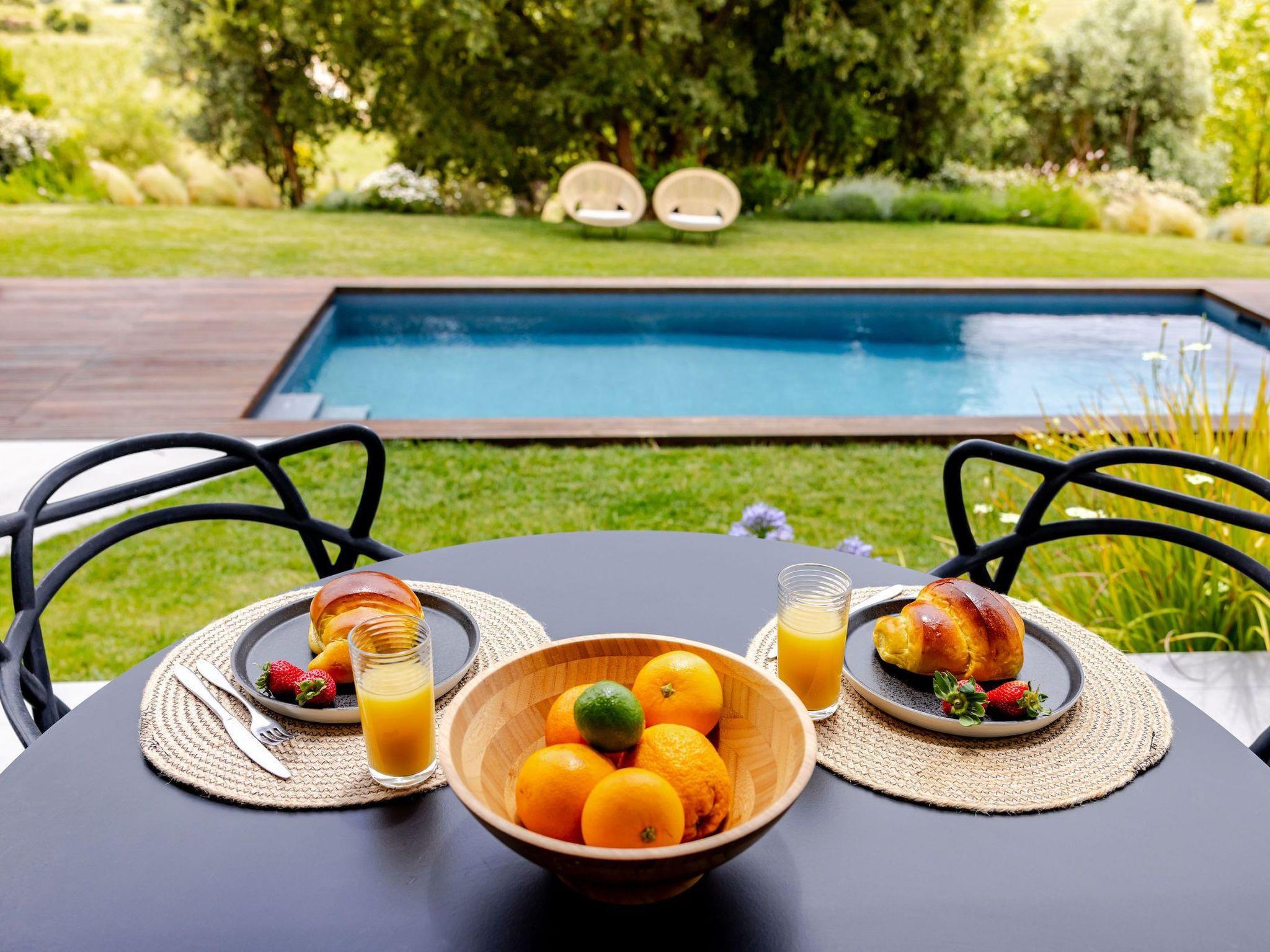 Im Außenbereich können die Gäste den schönen, gemeinschaftlich genutzten Garten genießen, in dessen Mittelpunkt ein attraktiver, gemeinschaftlicher Swimmingpool steht. Hier ist Entspannung angesagt, ob Sie nun ein erfrischendes Bad nehmen oder es sich einfach mit einem Buch auf dem Balkon Ihres Hauses gemütlich machen. Für diejenigen, die etwas mehr Privatsphäre suchen, bietet das Ferienhaus auch eine Dachterrasse, die Sie allein nutzen können.