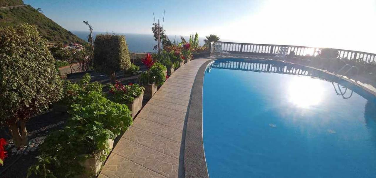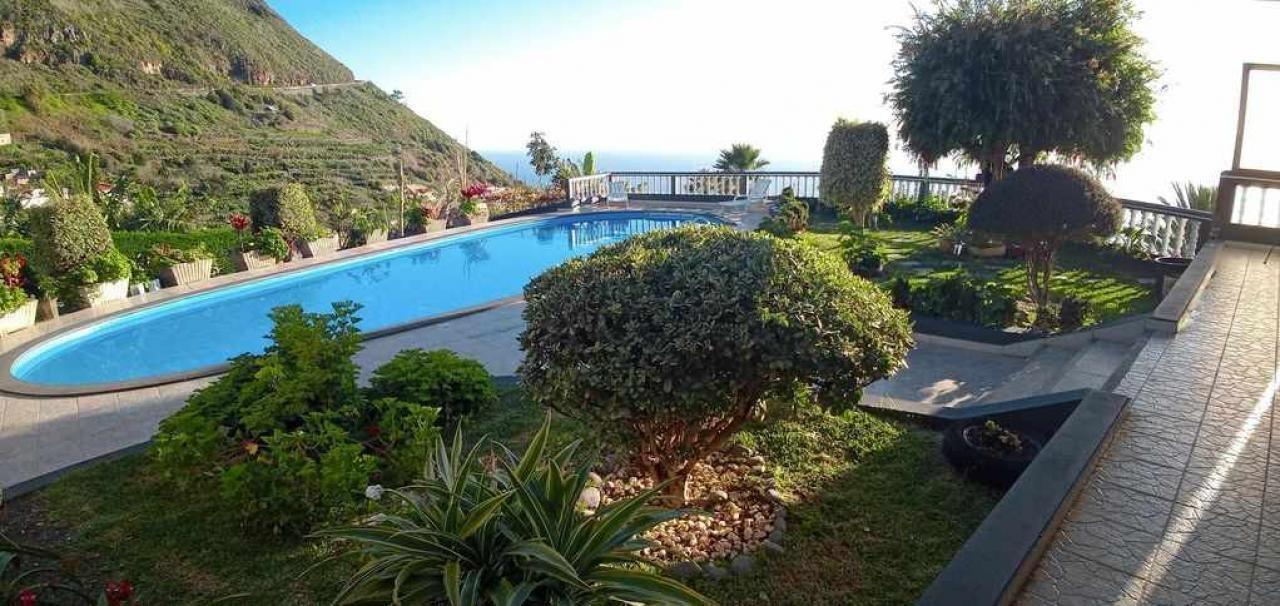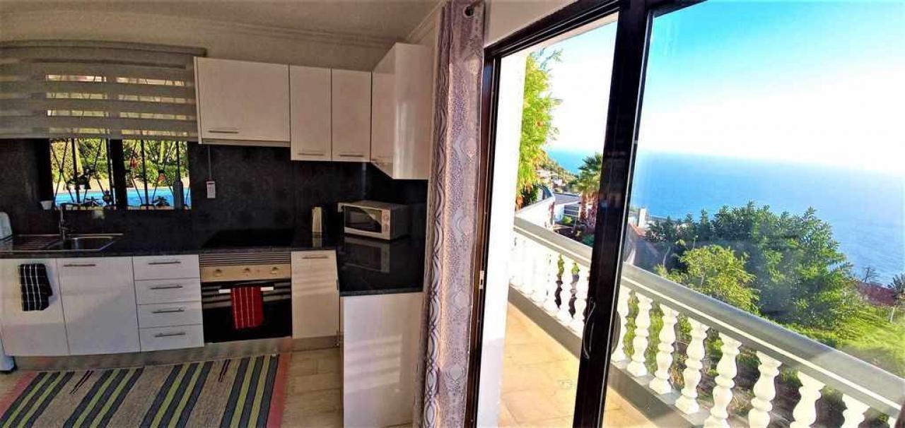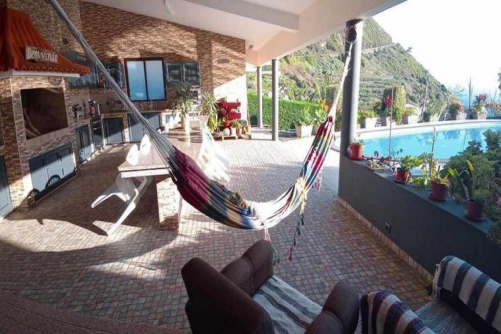 Draußen erwartet Sie ein bezaubernder subtropischer Garten mit exotischen Pflanzen, Obstbäumen und einer paradiesischen Pflanzenwelt mit Bananenstauden. Das Highlight des Außenbereichs ist zweifellos der extragroße Swimmingpool, der dazu einlädt, sich in der Sonne zu sonnen und dabei den faszinierenden Blick auf das Meer zu genießen. Für Mahlzeiten im Freien steht ein großer Grillplatz mit vielen Sitzgelegenheiten, einem großen Tisch, einem Fernseher und einer voll ausgestatteten Küche zur Verfügung, die für unvergessliche Abende unter dem Sternenhimmel sorgen.