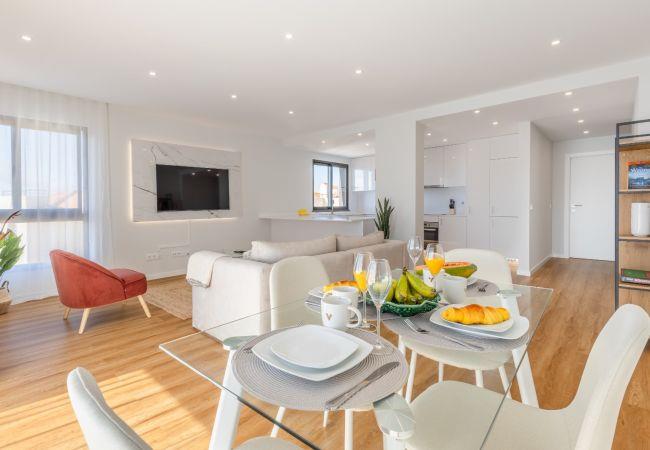 Im Wohnbereich steht ein Smart-TV mit Box bereit, und vom Balkon aus genießen Sie einen weiten Blick auf den Atlantik. Das Gebäude verfügt über einen Aufzug und es gibt einen privaten Stellplatz in der Garage.