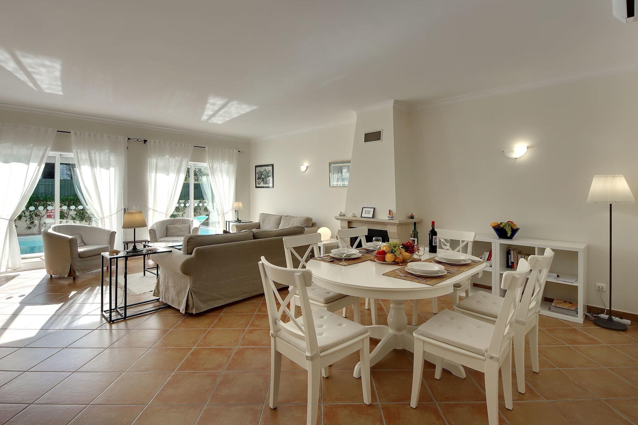 Diese moderne und sehr gepflegte Villa liegt nur 2 km vom lebendigen Carvoeiro entfernt, also wirklich ein Top-Standort! Es ist eine herrlich helle Villa, sehr komfortabel mit 3 Schlafzimmern und 3 Bädern. Vom Wohnzimmer aus gehen die Flügeltüren auf die Sonnenterrasse. Deren Mittelpunkt ist der Privatpool (7 m x 4 m). Natürlich stehen auch Liegestühle für Sie bereit - Entspannung und Genuss sind garantiert! Die Villa liegt in einer ruhigen Wohngegend am Rande des Dorfes. Lokale Einrichtungen sind bequem zu Fuß erreichbar. Das Zentrum von Carvoeiro ist nicht sehr weit entfernt. Dort finden Sie diverse Geschäfte, Restaurants, Bars und Terrassen. Der Strand von Carvoeiro liegt in einer Bucht mit hohen Klippen zu beiden Seiten. Von den Klippen aus können Sie tolle Fotos machen! An der wunderbaren Küste der Algarve können Sie natürlich noch mehr schöne Fotos machen, in der Gegend gibt es mehr als genug entzückende Buchten! Zu empfehlen sind Benagil, Da Marina, Carvalho... Aber gehen Sie ruhig selbst auf Entdeckungstour, Sie werden bestimmt viele schöne Orte finden!