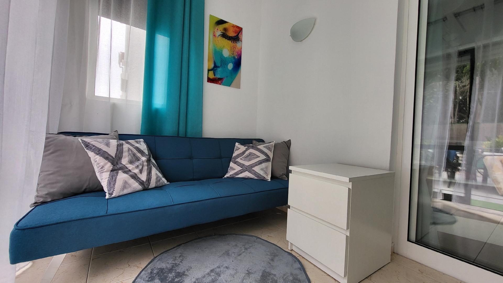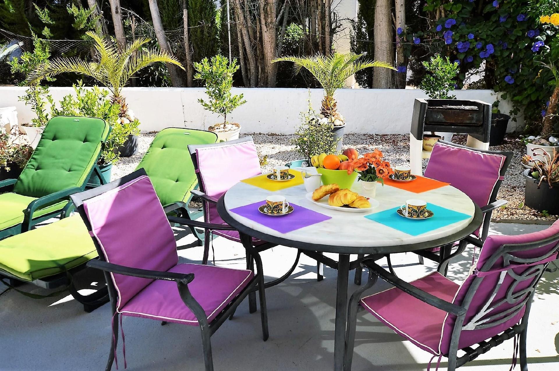 Die Wohnung hat eine eigene möblierte Terrasse mit Meerblick. Es gibt auch einen Grill, so dass Sie abends grillen können. Parkplätze sind vorhanden.