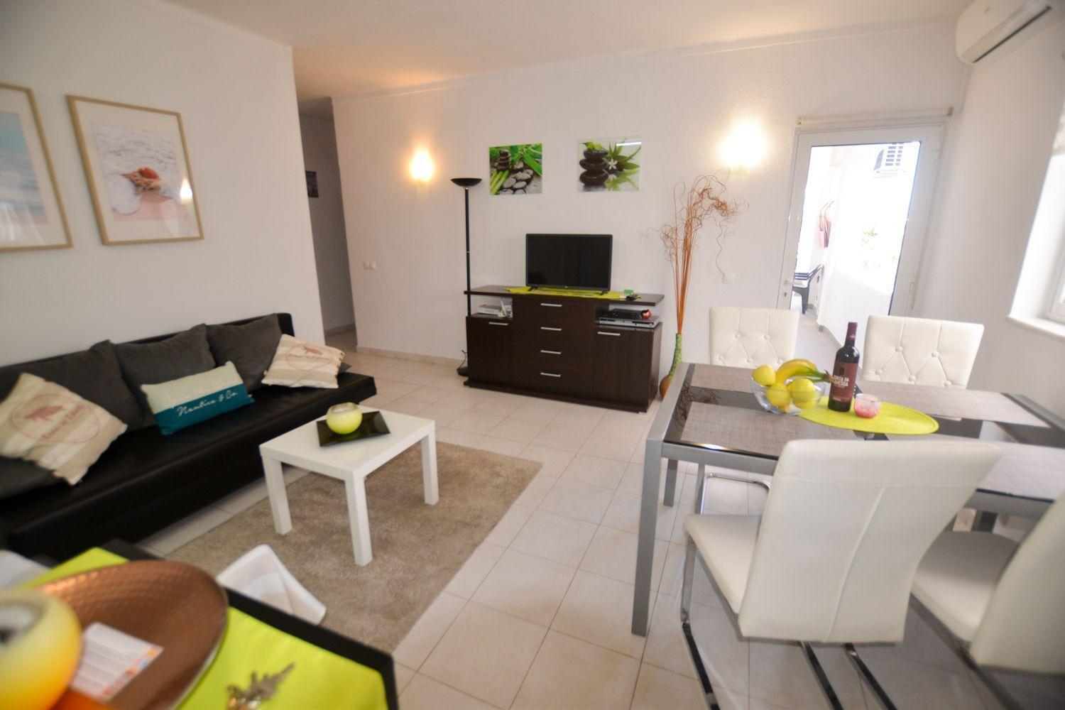 Die Wohnung verfügt über eine eigene möblierte Terrasse mit Meerblick. Es gibt auch einen Grill, so dass Sie abends grillen können. Privatparkplätze sind vorhanden.