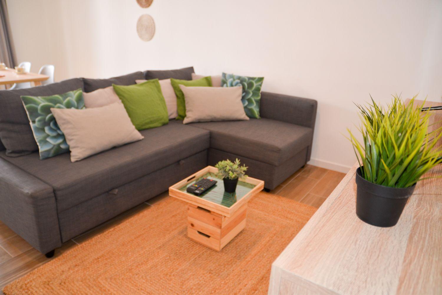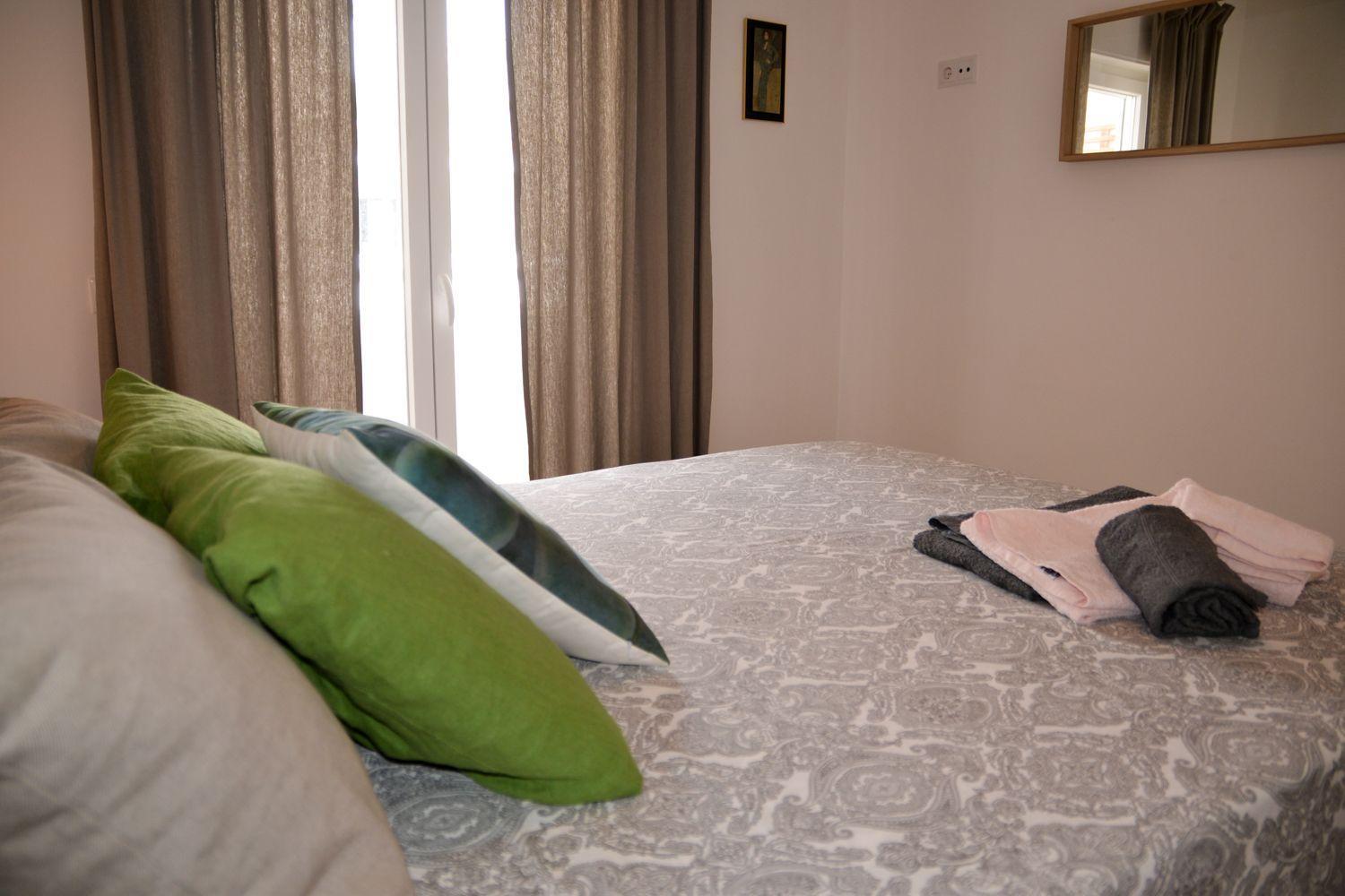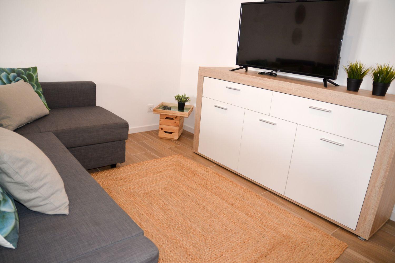 Ihre Ferienwohnung befindet sich im 3 Stock des Wohngebäudes. Stock des Wohngebäudes und wurde erst kürzlich komplett renoviert und mit allen modernen Annehmlichkeiten ausgestattet, die Sie für einen komfortablen Aufenthalt benötigen. Die Wohnung verfügt über einen Wohn-/Essbereich, eine moderne, voll ausgestattete Küche, ein Schlafzimmer und ein Badezimmer. Der helle und luftige Wohnbereich ist mit einem viersitzigen grauen Schlafsofa, das in ein Bett für zwei Kinder umgewandelt werden kann, einem digitalen Flachbildschirm, einem Esstisch mit vier Stühlen und einer modernen Küche mit Keramikkochfeld und stilvoller Dunstabzugshaube aus Edelstahl, Backofen, Kühlschrank mit Gefrierfach, Mikrowelle, Toaster, Wasserkocher und sogar einer Kaffeemaschine ausgestattet. Das Schlafzimmer ist mit einem 140 cm x 200 cm großen Doppelbett ausgestattet, verfügt über Nachttische mit Leselampen und einen Kleiderschrank mit viel Stauraum für Kleidung und Gepäck, das Badezimmer hat eine Badewanne und eine Dusche, ein Waschbecken mit Wandspiegel, einen Fön und eine Toilette. Bettwäsche, Handtücher und Waschmaschine stehen Ihnen in der Ferienwohnung kostenlos zur Verfügung, ebenso eine Heizung.