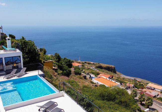 Willkommen in der Villa do Espigão, einem großartigen Rückzugsort im malerischen Fajã da Ovelha auf Madeira. Diese atemberaubende Villa bietet ein exquisites Urlaubserlebnis, das Komfort, Stil und atemberaubende Ausblicke vereint. Lassen Sie mich Ihnen eine detaillierte Beschreibung geben: