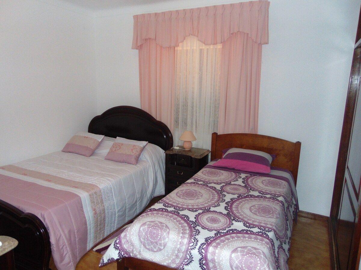 Das Apartment im ersten Stock besteht aus 3 Schlafzimmern (jedes mit einem Doppelbett, im größten kann ein Zusatzbett aufgestellt werden), 1 Wohnzimmer mit Satellitenfernsehen mit über 100 nationalen und ausländischen Kanälen, 1 voll ausgestattete Küche mit Kühlschrank, Herd, Backofen, Mikrowelle, Toaster, Mixer, Geschirrspüler, Waschmaschine, Bügeleisen und Bügelbrett usw.. Wir haben kostenlosen drahtlosen Internetzugang. Kostenlose Parkplätze auf dem Grundstück. Wir haben Heizung in allen 3 Schlafzimmern. Bettwäsche und Handtücher werden kostenlos zur Verfügung gestellt.