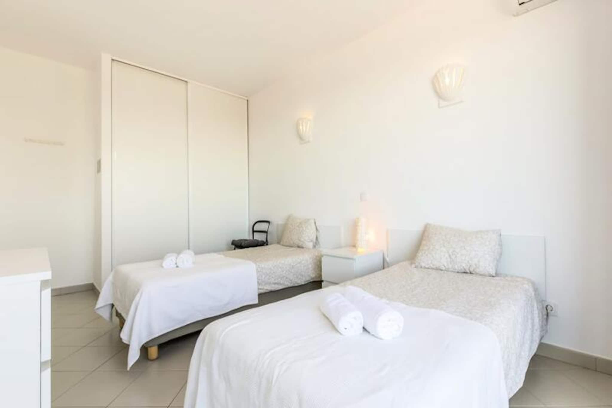Stellen Sie sich vor, Sie wachen mit dem beruhigenden Rauschen des Meeres auf und genießen die frische Meeresbrise auf Ihrer privaten Terrasse. Dieses wunderschön gestaltete Reihenhaus in einer ruhigen und sicheren Wohnanlage nahe Ferragudo bietet die perfekte Kombination aus modernem Komfort und natürlicher Schönheit. Umgeben von üppigen Gärten und nur wenige Schritte vom goldenen Sandstrand Praia dos Caneiros entfernt, ist dieses Anwesen eine wahre Oase der Entspannung und Erkundung. Treten Sie ein und lassen Sie sich von einem hellen und einladenden Wohnbereich empfangen. Im Erdgeschoss befindet sich ein geräumiges Wohnzimmer mit Zugang zu einer fantastischen Terrasse mit Grill – ideal für Mahlzeiten im Freien mit Blick auf die Gärten und das nahegelegene Naturschutzgebiet. Die voll ausgestattete, moderne Küche mit brandneuen Geräten garantiert ein unkompliziertes Kocherlebnis. Im Obergeschoss befinden sich zwei elegante Schlafzimmer mit Einbauschränken und jeweils eigener Terrasse mit freiem und ruhigem Ausblick. Das Haus verfügt außerdem über zwei stilvolle Badezimmer, eines davon mit ebenerdiger Dusche, sowie ein separates WC. Auch die Lage des Hauses ist unschlagbar. Nur fünf Gehminuten entfernt liegt der traumhafte Strand Praia dos Caneiros, wo Sie die Sonne genießen oder die beeindruckende Küste erkunden können. Das charmante Dorf Ferragudo mit seinen malerischen Gassen und einladenden Restaurants erreichen Sie in nur zwei Autominuten. Wer es etwas abenteuerlicher mag, findet die lebhafte Stadt Portimão mit ihren vielfältigen Shopping-, Gastronomie- und Kulturangeboten in unmittelbarer Nähe. Ob Sie einen ruhigen Rückzugsort suchen oder die Schätze der Algarve entdecken möchten – dieses Haus ist die ideale Wahl. Geschmackvoll eingerichtet, modern ausgestattet und in bester Lage, verspricht es einen unvergesslichen Urlaub. Buchen Sie noch heute und schaffen Sie bleibende Erinnerungen in diesem Küstenparadies.