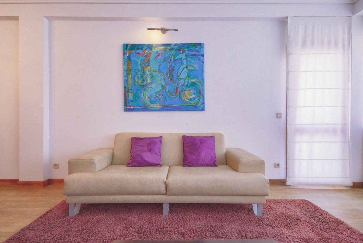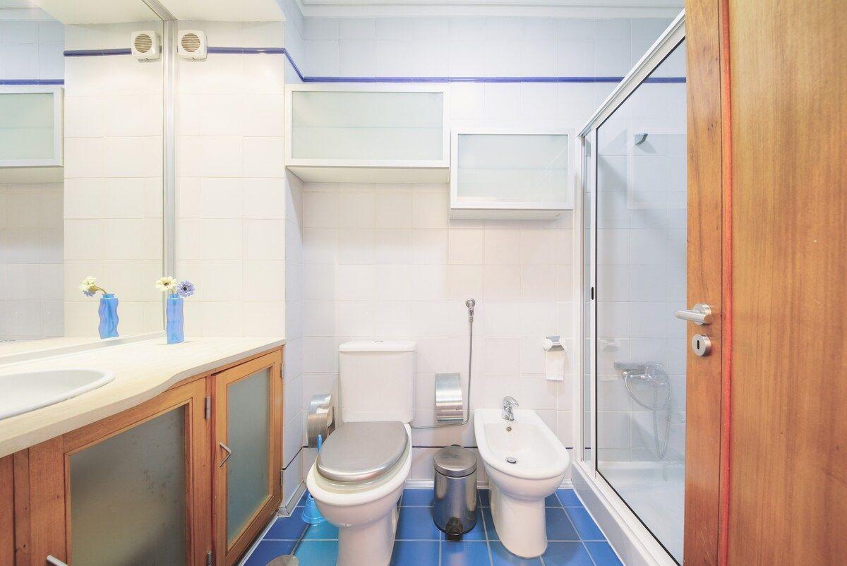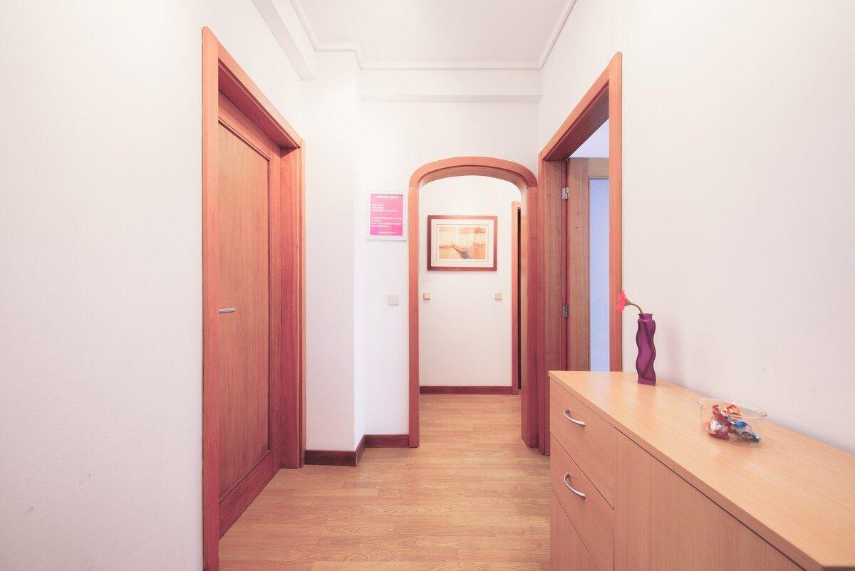 Das Innere der Wohnung ist so ausgestattet, dass es keine Wünsche offen lässt. Das Herzstück der Wohnung ist die moderne Küche, die mit einem Gasherd, einer Kaffeemaschine, einem Wasserkocher und einem Geschirrspüler ausgestattet ist, so dass die Zubereitung von Mahlzeiten zum Vergnügen wird. Eine Waschmaschine zur alleinigen Nutzung trägt ebenfalls zur Zweckmäßigkeit dieser Unterkunft bei, so dass sich die Gäste wie zu Hause fühlen können. Zusammen mit dem gepflegten Badezimmer sorgt die Ausstattung der Wohnung für Bequemlichkeit und Komfort.