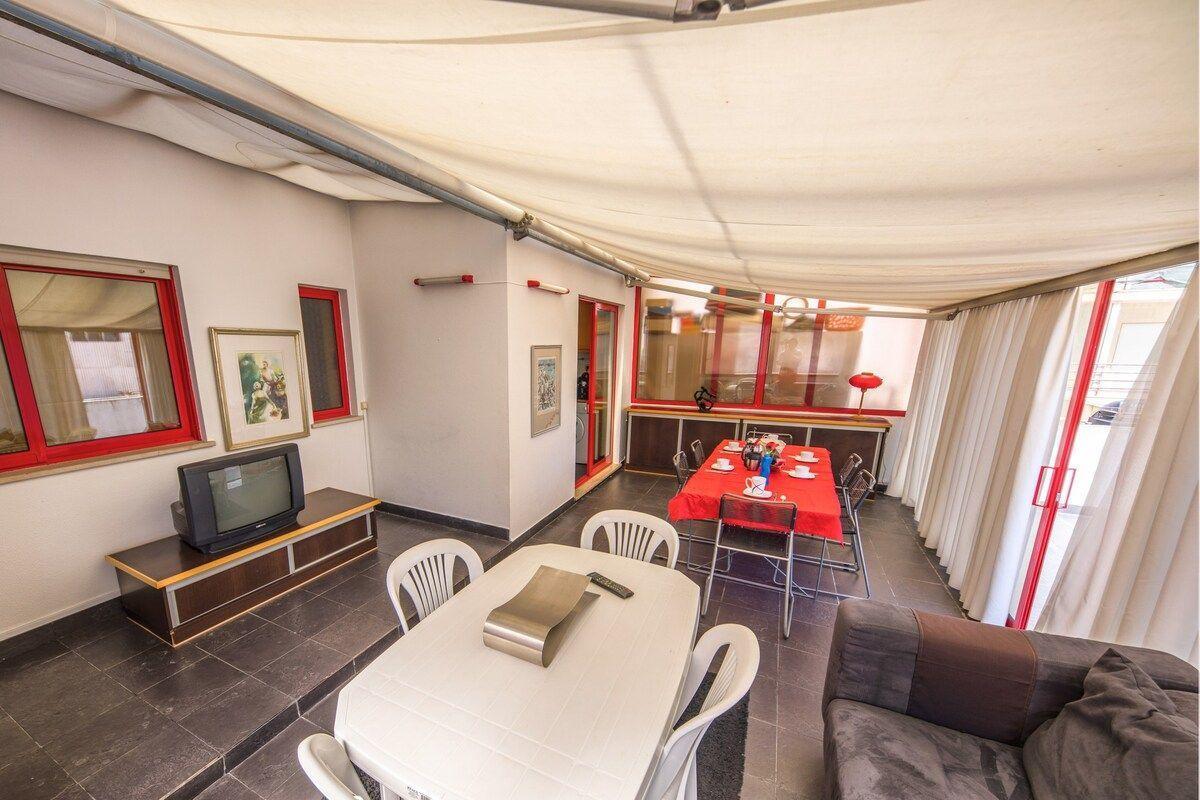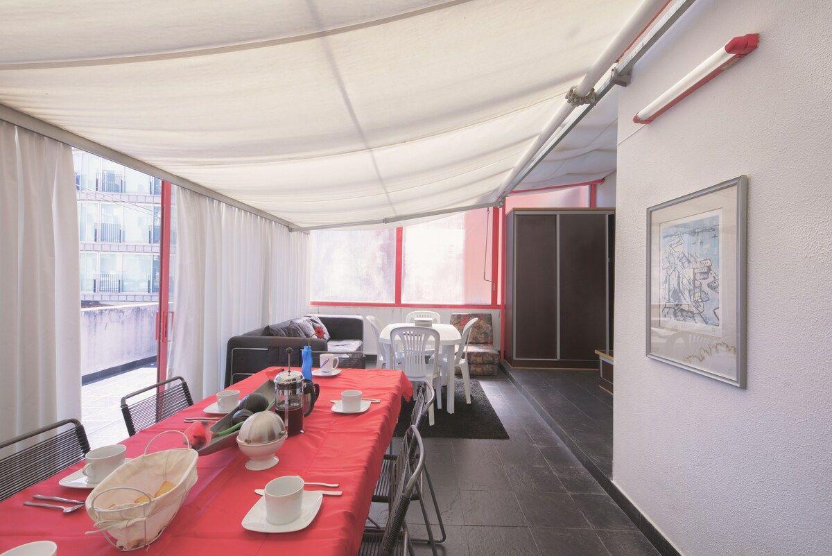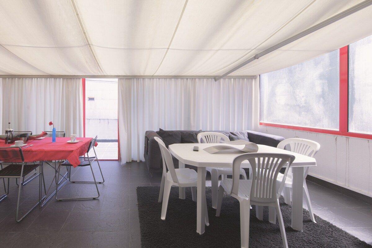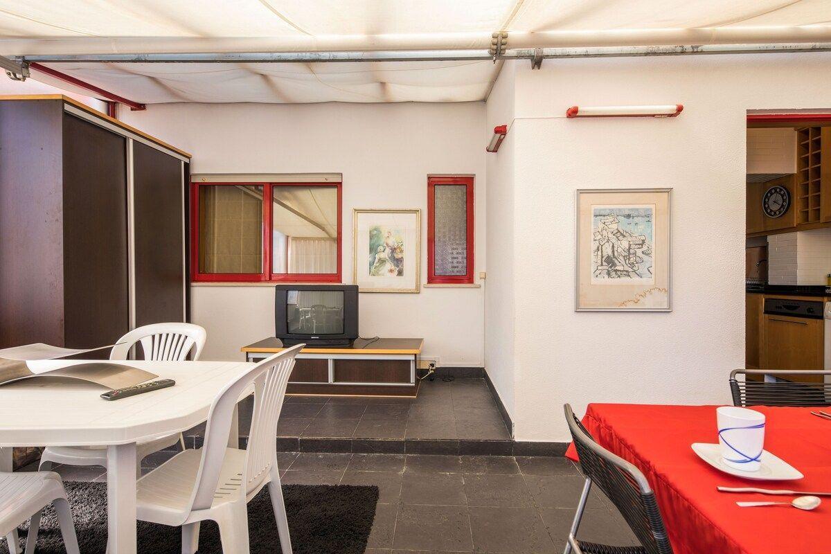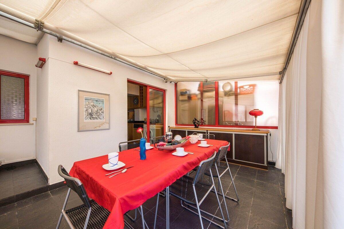 Die Krönung des Apartments ist die große private Terrasse. Sie ist mit einem Esstisch ausgestattet und lädt dazu ein, im Freien zu speisen, gemütlich zu frühstücken oder einfach die frische Luft und die ruhige Atmosphäre zu genießen. Egal, ob Sie einen ruhigen Rückzugsort oder einen Ort der Unterhaltung suchen, die Terrasse bietet den perfekten Rahmen.