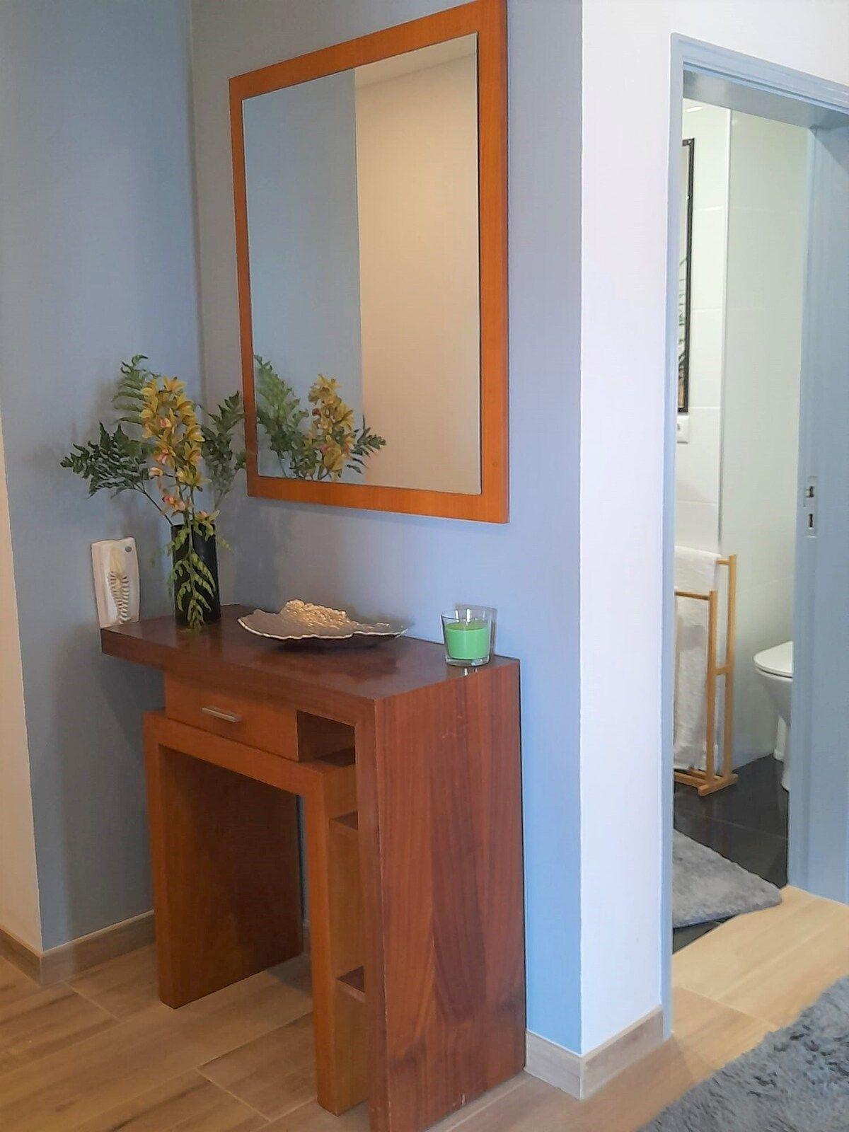 Die geräumige Terrasse ist der perfekte Ort, um im Freien zu speisen oder einfach mit einem Buch in der Sonne zu entspannen. Obwohl die Wohnung über kostenlose Straßenparkplätze verfügt, lädt ihre Lage zu Spaziergängen zu den nahe gelegenen Sehenswürdigkeiten ein. Nur 5 Gehminuten von der Haustür entfernt wartet der Strand mit seinem goldenen Sand und dem einladenden Wasser auf Sie, während die Dinge des täglichen Bedarfs im 500 Meter entfernten Lebensmittelgeschäft leicht zu finden sind.