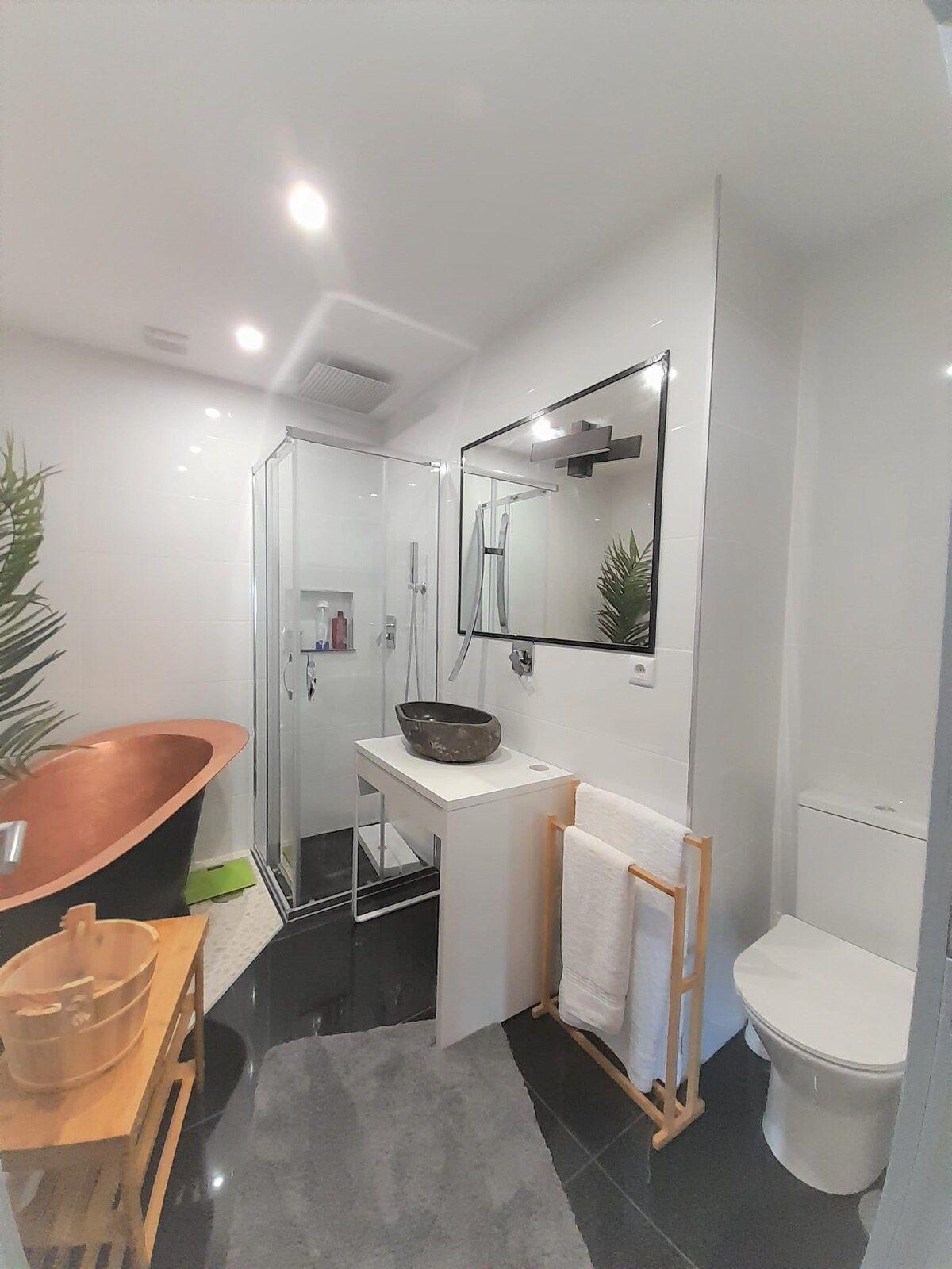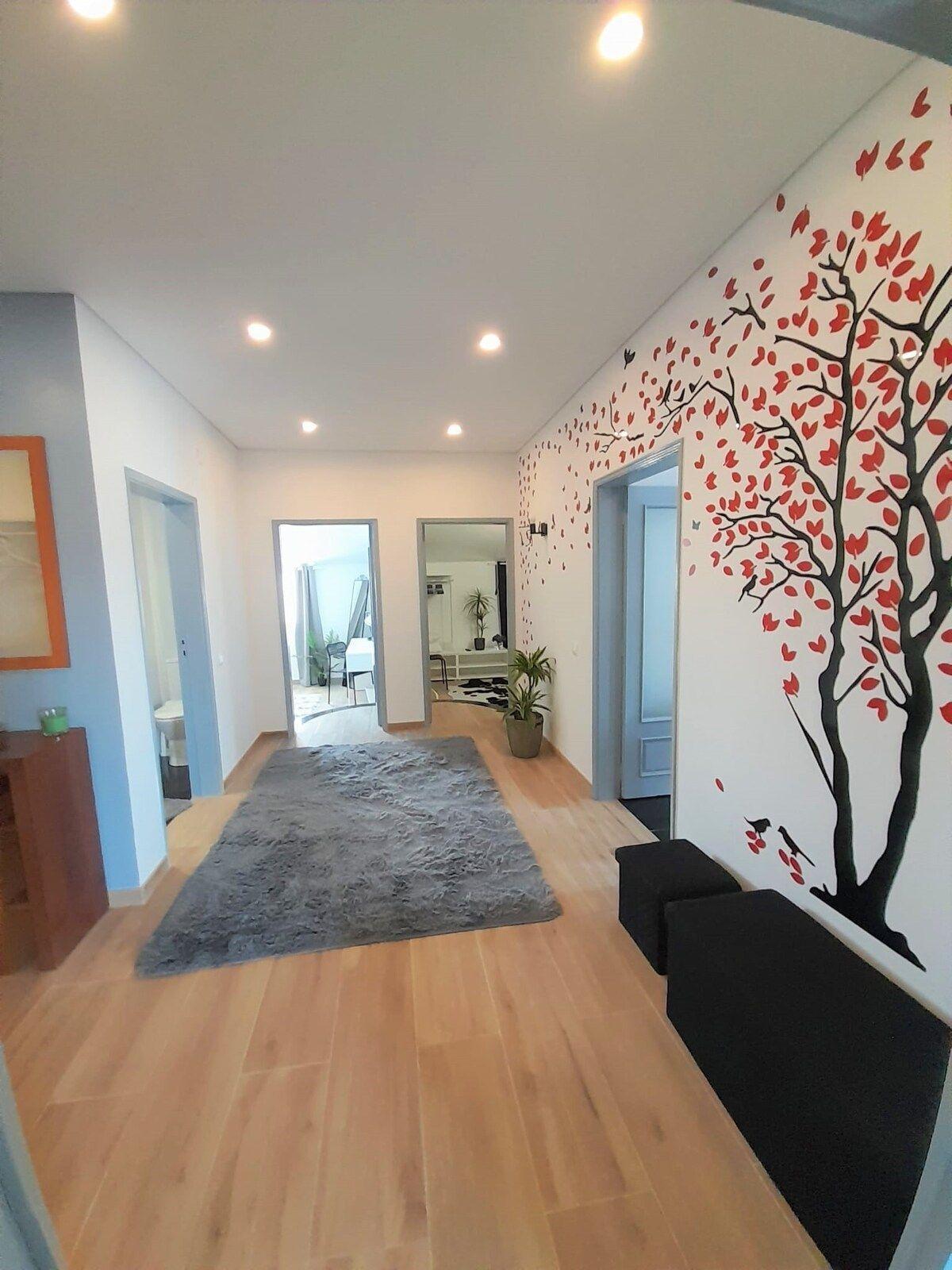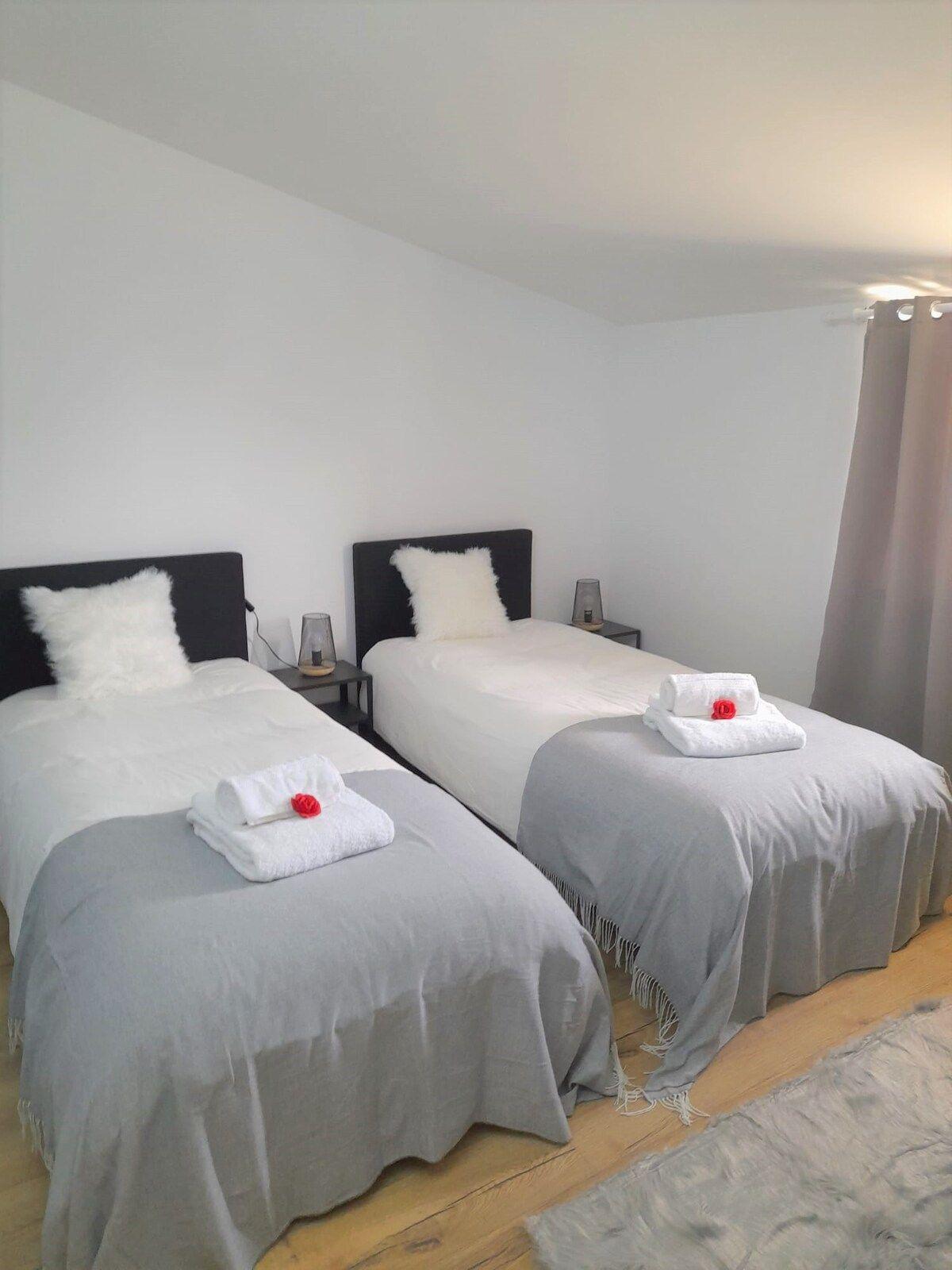 Im Inneren finden die Gäste eine gut ausgestattete Einrichtung mit allen Annehmlichkeiten, die für einen angenehmen Aufenthalt erforderlich sind. Die Wohnung verfügt über zwei gemütliche Schlafzimmer, eines davon mit Doppelbett und eigenem Bad, das andere mit zwei Einzelbetten, so dass jeder einen bequemen Platz zum Ausruhen nach einem Tag voller Entdeckungen hat. Das Herzstück der Wohnung, die voll ausgestattete Küche, verfügt über einen Gasherd, eine Kaffeemaschine, einen Geschirrspüler und sogar einen Wasserkocher, um Ihre kulinarischen Bedürfnisse zu befriedigen. Zusätzliche moderne Annehmlichkeiten wie eine Klimaanlage in der gesamten Wohnung, eine Waschmaschine und ein Trockner zur alleinigen Nutzung tragen zu einem stressfreien Urlaub bei.