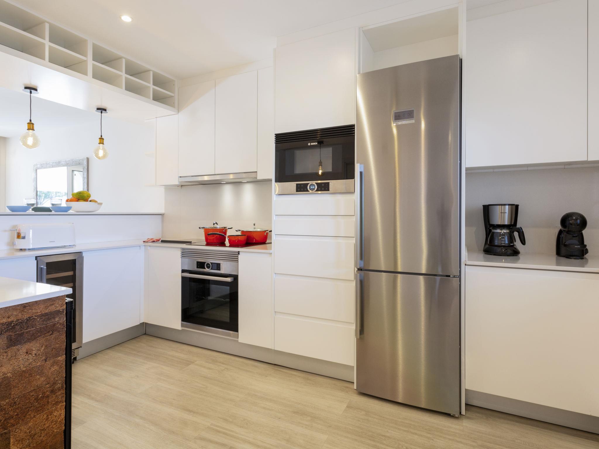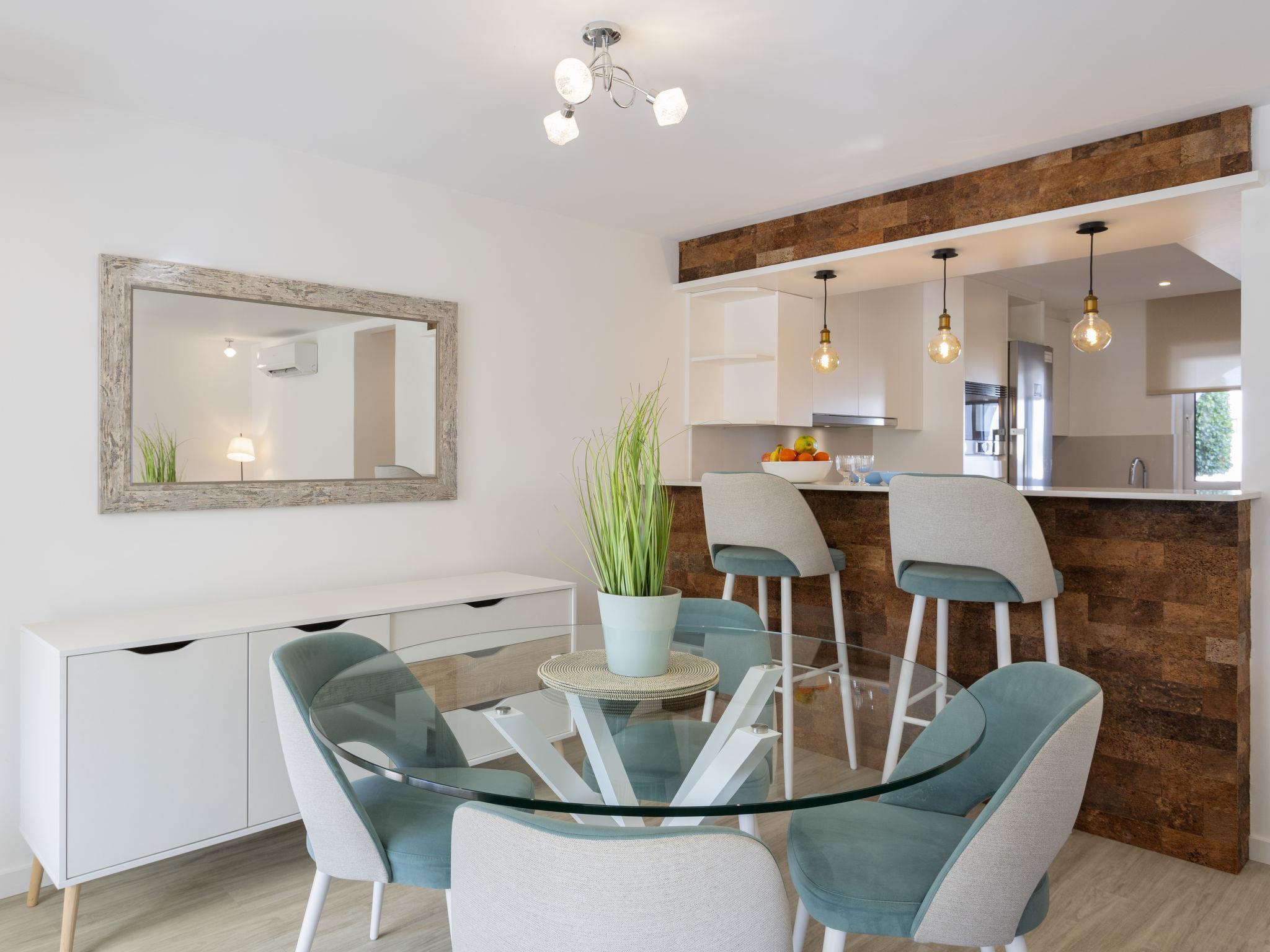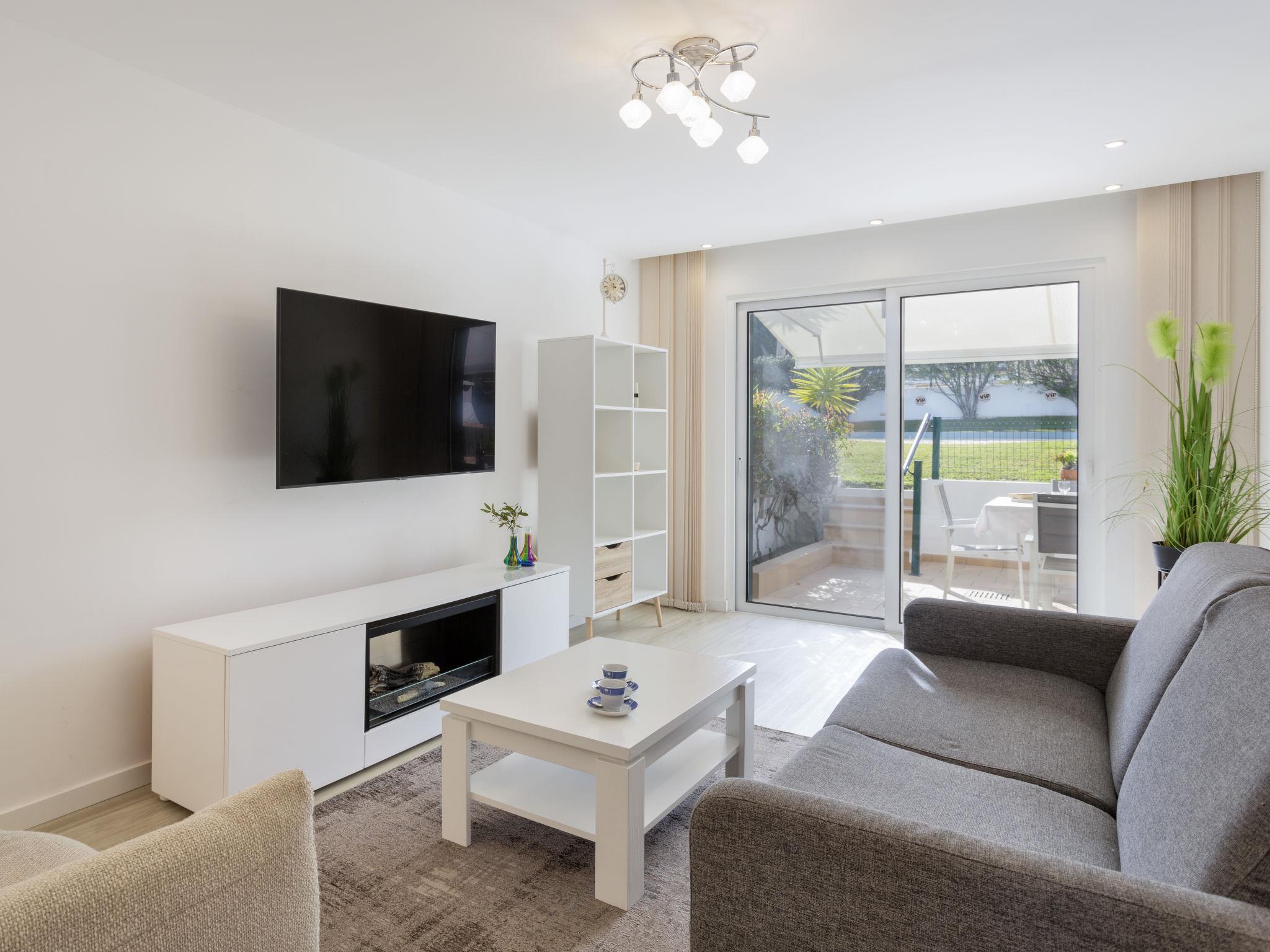 "Pierre", 3-Zimmer-Reihenhaus 115 m2 auf 2 Stockwerken. Geräumig und hell, schön und modern eingerichtet: Wohn-/Esszimmer mit 1 Diwanbett (160 cm, Länge 180 cm), Esstisch, Küchenblock, Kabel-TV, Internationale TV-Sender, Flachbildschirm, Klimaanlage und Warmluftheizung. Ausgang zur Terrasse, zum Schwimmbad. Offene Küche (Backofen, Geschirrspüler, 4 Glaskeramikplatten, Toaster, Wasserkocher, Mikrowelle, Tiefkühler, elektrische Kaffeemaschine). Sep. WC. Obergeschoss: 1 Zimmer mit 1 franz. Bett (180 cm, Länge 200 cm), Dusche/WC, Klimaanlage und Warmluftheizung. Ausgang zur Terrasse. 1 Zimmer mit 2 Betten (90 cm, Länge 200 cm), Klimaanlage und Warmluftheizung. Ausgang zur Terrasse. Bad/Bidet/WC. Terrassenmöbel, Gartengrill, Liegestühle (2). Sicht auf das Schwimmbad. Zur Verfügung: Waschmaschine, Wäschetrockner, Bügeleisen, Kinderhochstuhl, Babybett bis 2 Jahre (extra), Haartrockner. Internet (Wireless LAN, gratis). Parkplatz beim Haus. Geeignet für Familien. 125325/AL