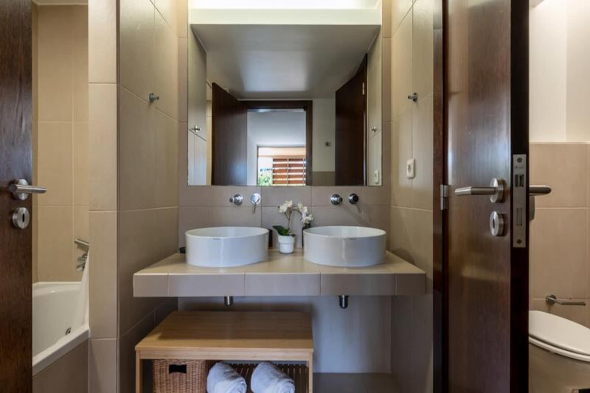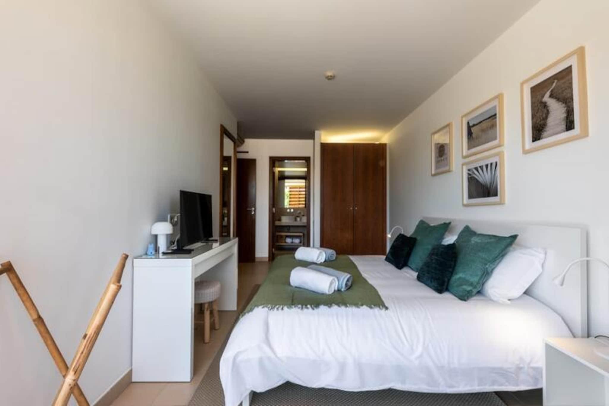 Erwecken Sie Ihre Sinne im Herzen von Guia, einem charmanten Dorf an der Algarve, wo Tradition auf Küstenflair trifft. Dieses entzückende Apartment mit zwei Schlafzimmern bietet einen ruhigen Rückzugsort, nur wenige Schritte von den goldenen Stränden Albufeiras und dem glitzernden Atlantik entfernt. Ob Sie die reiche Kultur der Region erkunden oder einfach nur am Wasser entspannen möchten – diese Unterkunft verspricht einen unvergesslichen Aufenthalt. Treten Sie ein und entdecken Sie einen hellen und luftigen Wohnbereich, der mit viel Liebe zum Detail für Komfort und Entspannung gestaltet wurde. Das Hauptschlafzimmer verfügt über ein luxuriöses Kingsize-Bett und ein eigenes Badezimmer, während das zweite Schlafzimmer mit zwei gemütlichen Einzelbetten ausgestattet ist. Im Wohnzimmer befinden sich zwei weitere Ausziehbetten, wodurch das Apartment ideal für Familien oder Gruppen bis zu sechs Personen ist. Große Schiebetüren führen auf einen privaten, nach Osten ausgerichteten Balkon – perfekt, um den Morgenkaffee zu genießen oder einen ruhigen Abend unter dem Sternenhimmel zu verbringen. Die voll ausgestattete Küche und der Essbereich laden dazu ein, gemeinsam köstliche Mahlzeiten zuzubereiten und zu genießen. Gäste haben Zugang zu einem erfrischenden Gemeinschaftspool, einem Highlight der Anlage, der Ihrem Aufenthalt einen Hauch von Luxus verleiht. Abseits der Wohnung bietet Guia eine Fülle an Attraktionen. Das Dorf, bekannt als Geburtsort des berühmten Piri-Piri-Hähnchens, ist ein Paradies für Feinschmecker mit zahlreichen Restaurants, die authentische portugiesische Küche servieren. Naturliebhaber werden die malerischen Wanderwege und Weinberge der Umgebung zu schätzen wissen, während Familien einen Tag im nahegelegenen Wasserpark Zoomarine verbringen können. Zum Shoppen und für Unterhaltung ist die Algarve Shopping Mall nur eine kurze Autofahrt entfernt. Mit seiner Kombination aus Komfort, praktischer Lage und der Nähe zu Naturschönheiten und kulturellen Sehenswürdigkeiten ist diese Wohnung der perfekte Ausgangspunkt für Ihr Algarve-Abenteuer. Ob Sie die lebhafte Stadt Albufeira erkunden, an unberührten Stränden entspannen oder die verborgenen Schätze Südportugals entdecken möchten – Guia bietet Ihnen eine ruhige und dennoch gut angebundene Umgebung für einen unvergesslichen Urlaub.