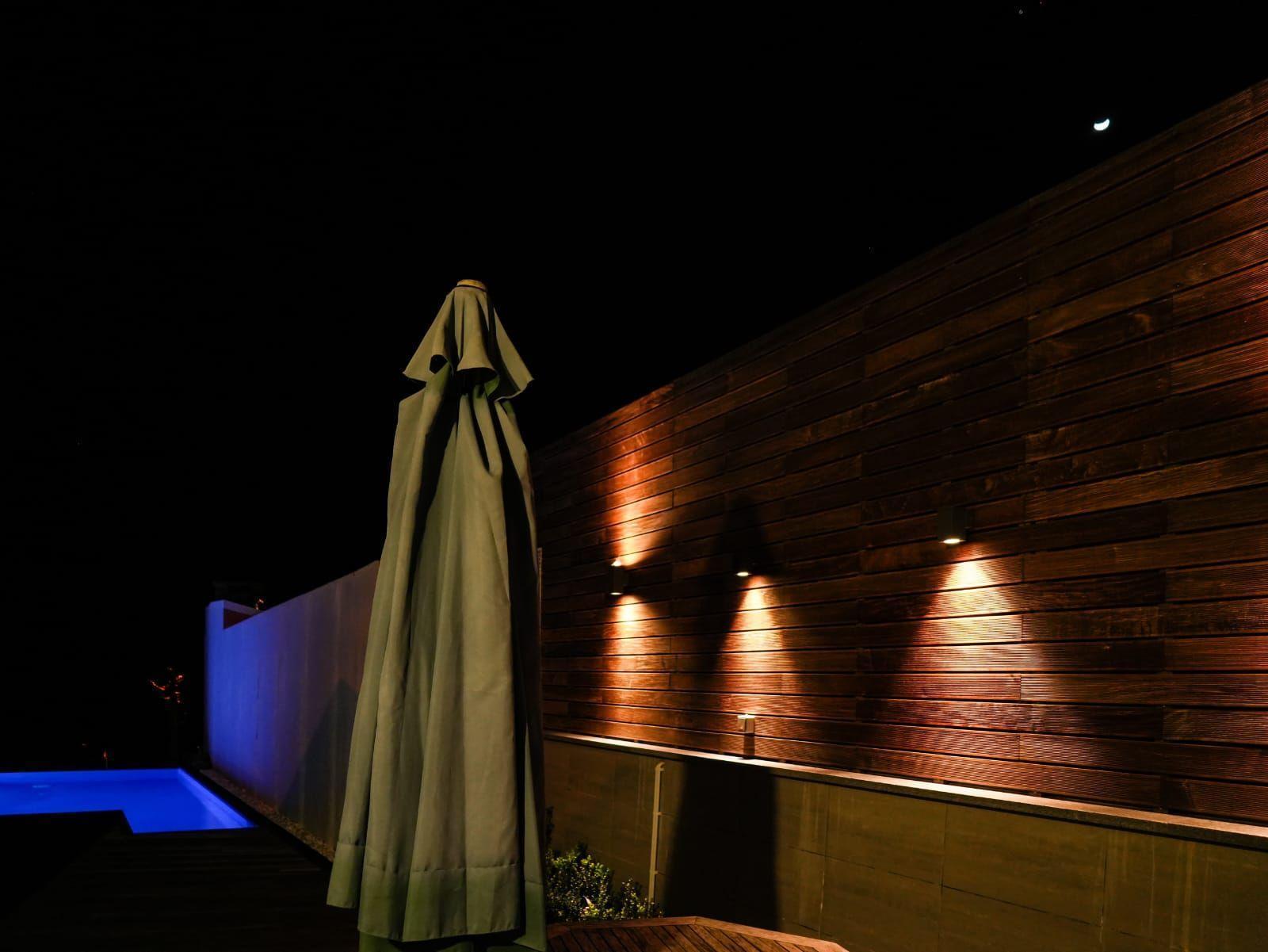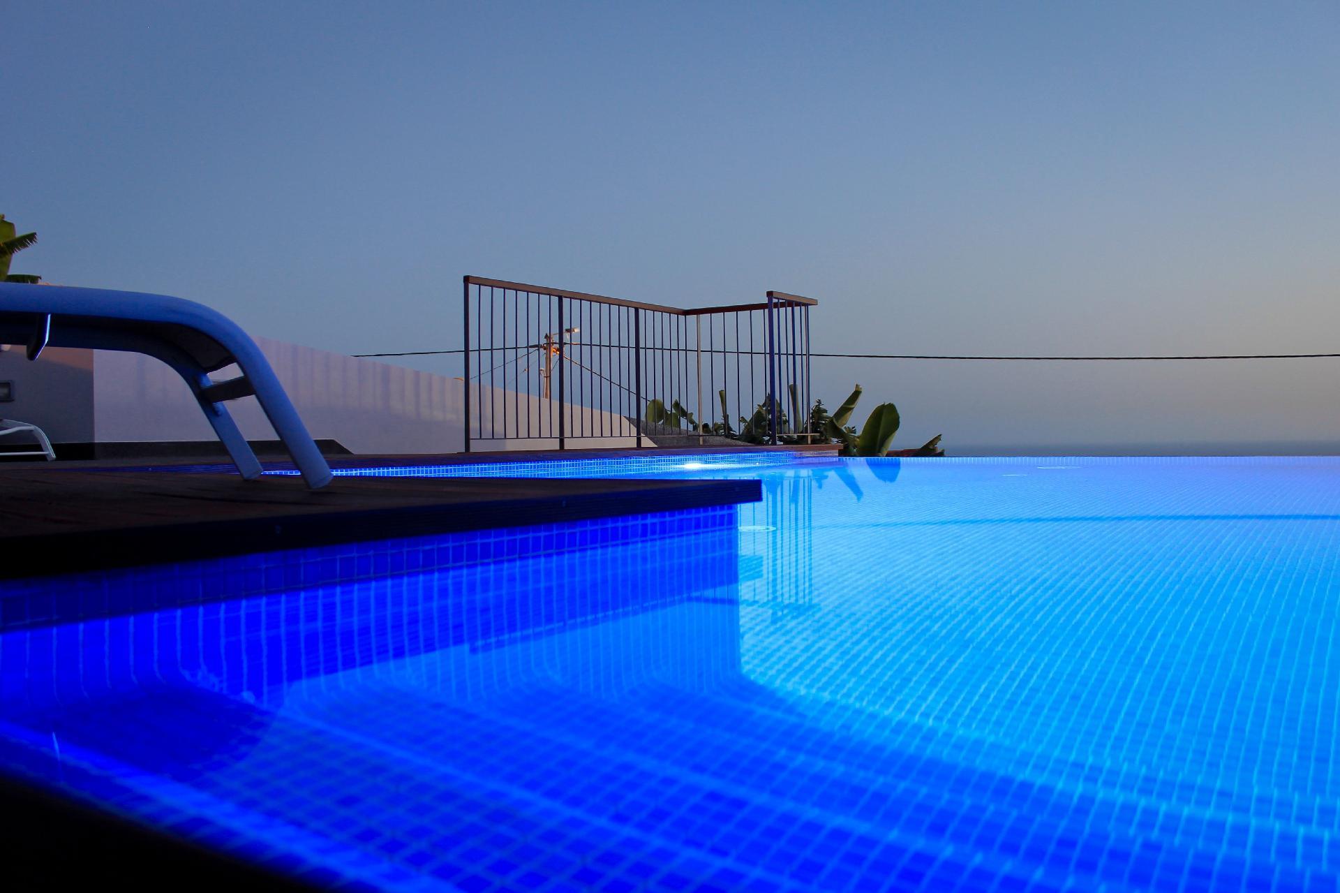 Im großen Außenbereich erwartet Sie Ihr privater Infinity-Pool, von dem aus Sie den Panoramablick auf das Meer genießen können. Nachts kann der Pool beleuchtet werden.