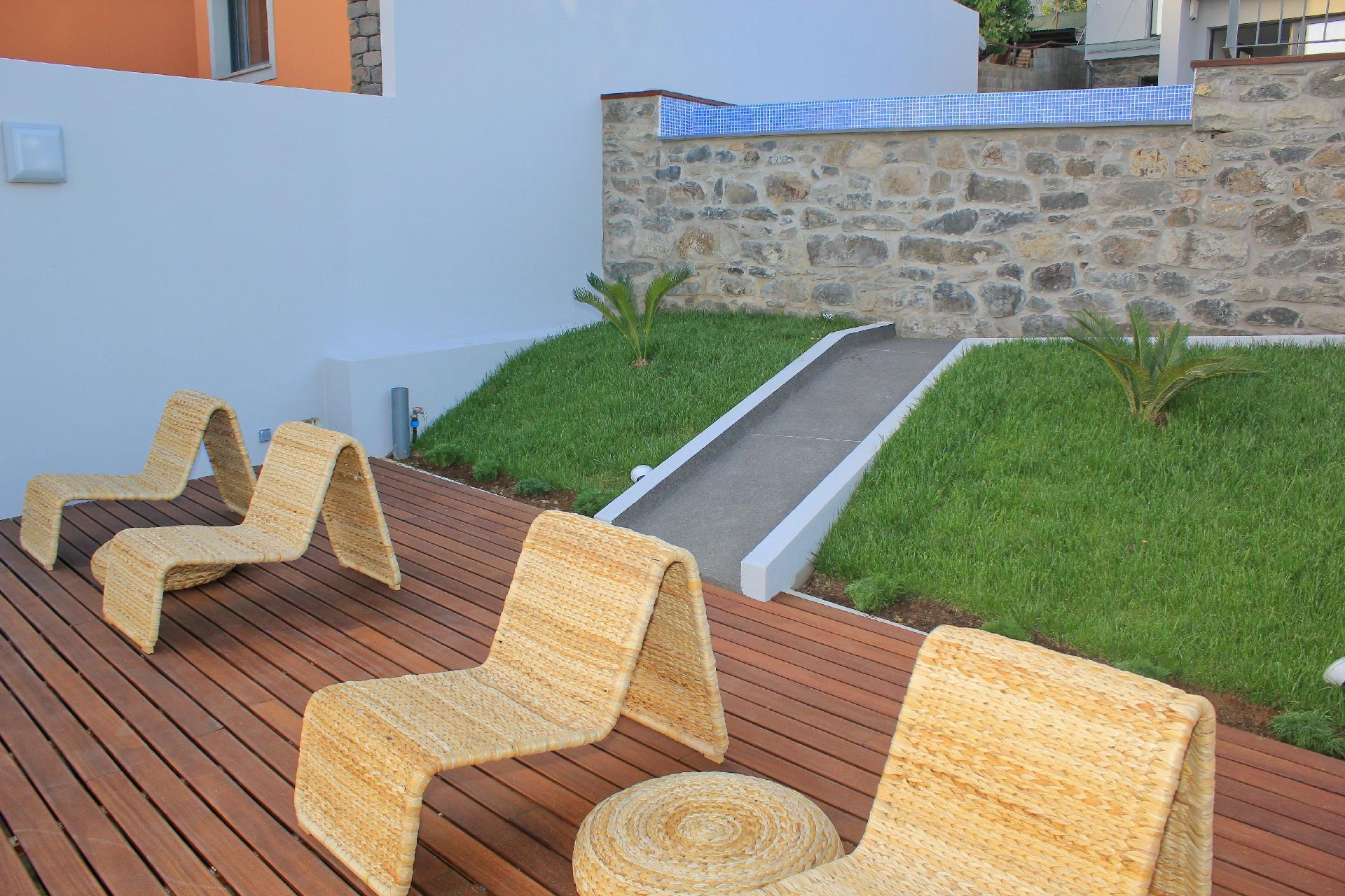 Auf der Rückseite der Villa gibt es auch einen Bereich mit kleinen Obstbäumen und aromatischen Kräutern, Olivenbäumen sowie Madeira-Bananenbäumen.