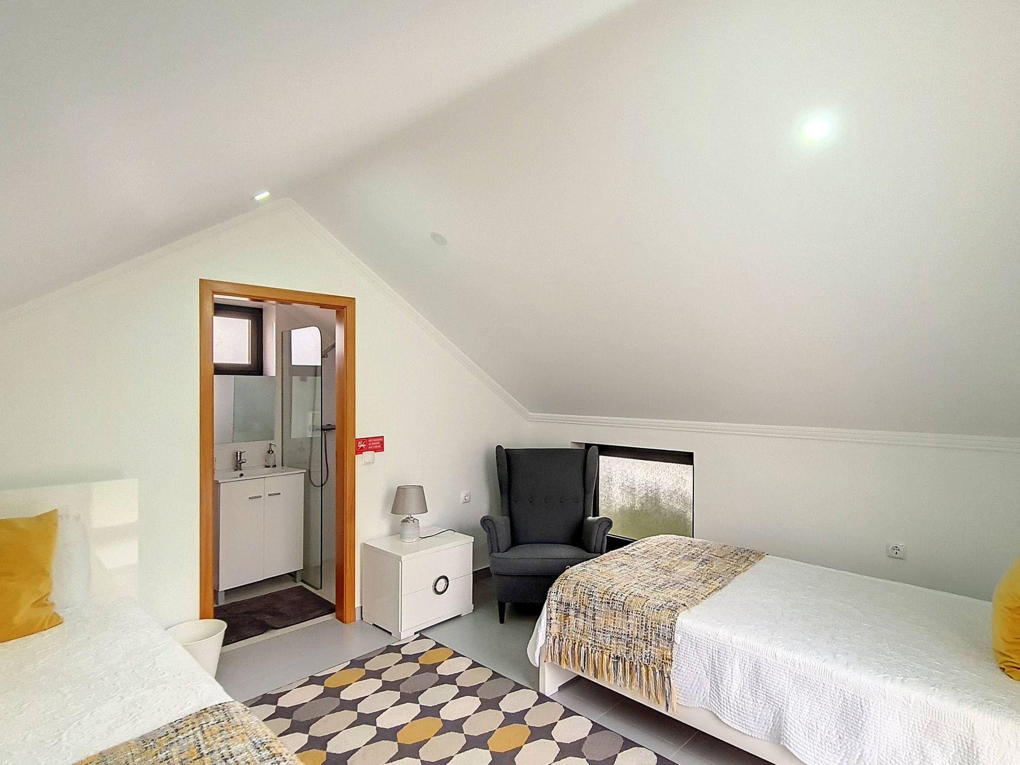 Unterkunft mit 4 Schlafzimmern, moderner Küche, 2 Bädern, Wohnzimmer und TV-Raum, Schwimmbad, Grill, Gärten, Terrassen, mehrere Punkte für Ruhe und Entspannung und einen privaten Parkplatz.
