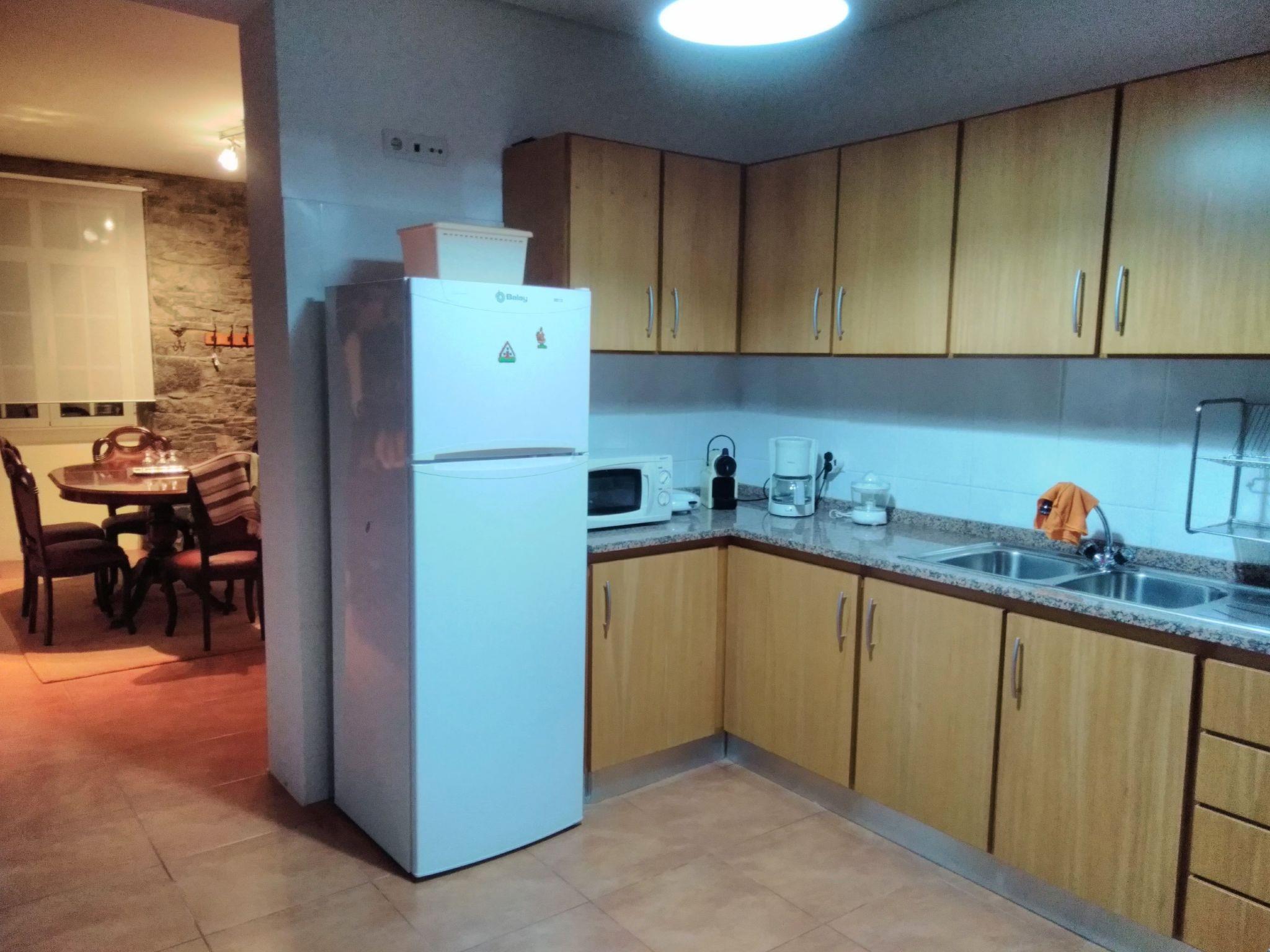 Große Küche mit Zugang zum Grill mit Gartenmöbeln.