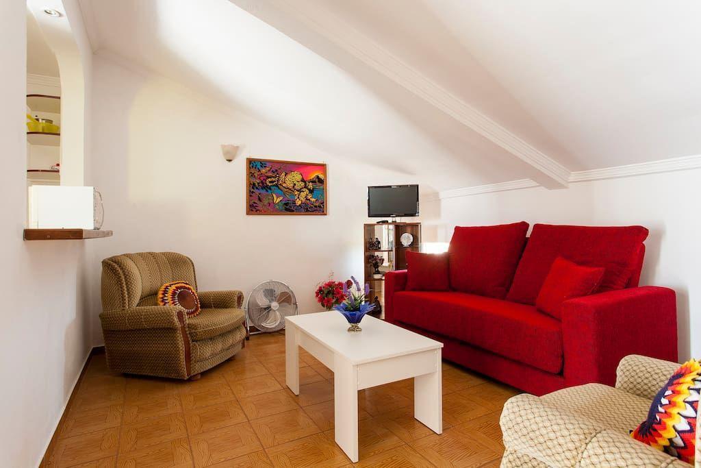 Die Wohnung befindet sich in einem zweistöckigen Haus, das insgesamt drei Ferienwohnungen hat. Es bietet 1 Schlafzimmer, eine Küche, 2 Wohnzimmer, ein Badezimmer, eine große Terrasse mit Panoramablick